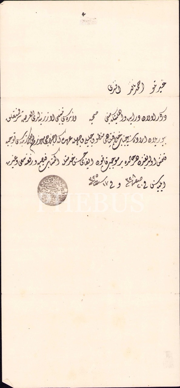 İzzetli Ahmed Nafiz Efendi'ye Eczacı Mülazım-ı Evvelliği rütbesi verilmesine dair berat, 20x40 cm