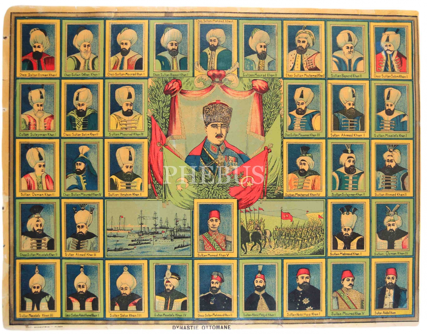 Cezayir'de Basılan Mustafa Kemal Atatürk ve Osmanlı Padişahları Afişi, Editör Bonesteve-Alger, 42x32 cm