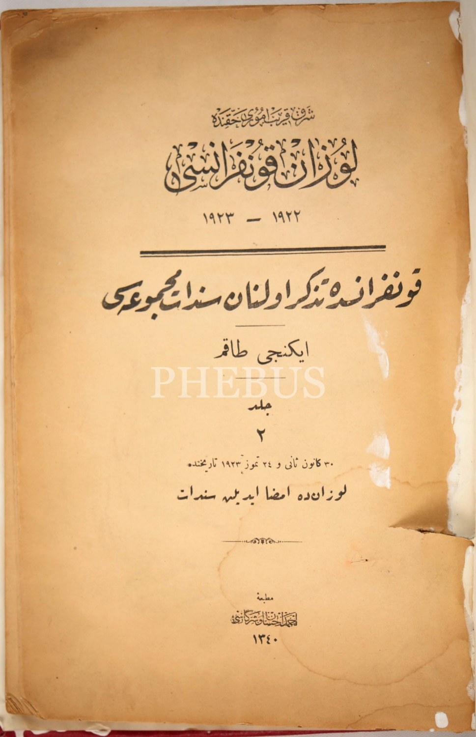 Osmanlıca Lozan Konferansında Tezekkür Olunan Senedat Mecmuası, Cild 2, Ahmed İhsan ve Şürekası Matbaası, 1340 tarihli, 146 sayfa, 24x33 cm