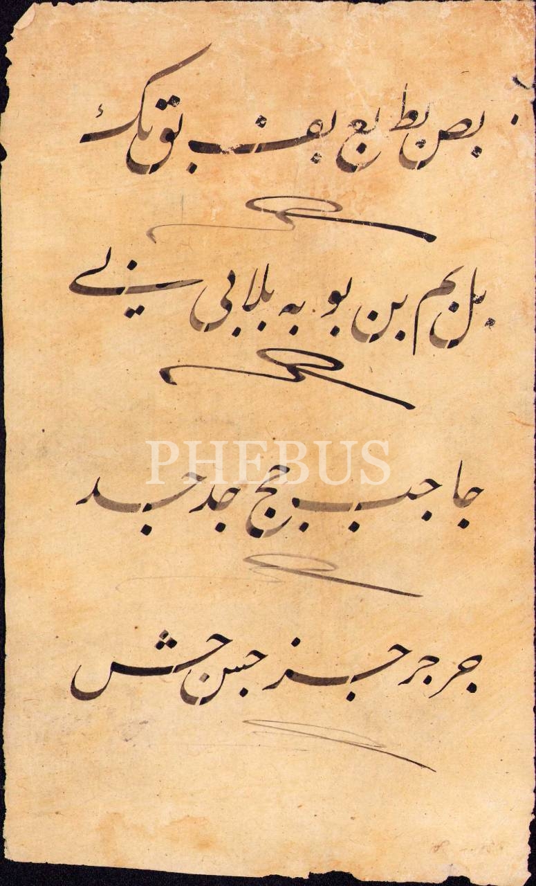 Hoca İşİ Talik Hurufat Meşki, iki adet, birinin kenarları haliyle, 12x22 cm