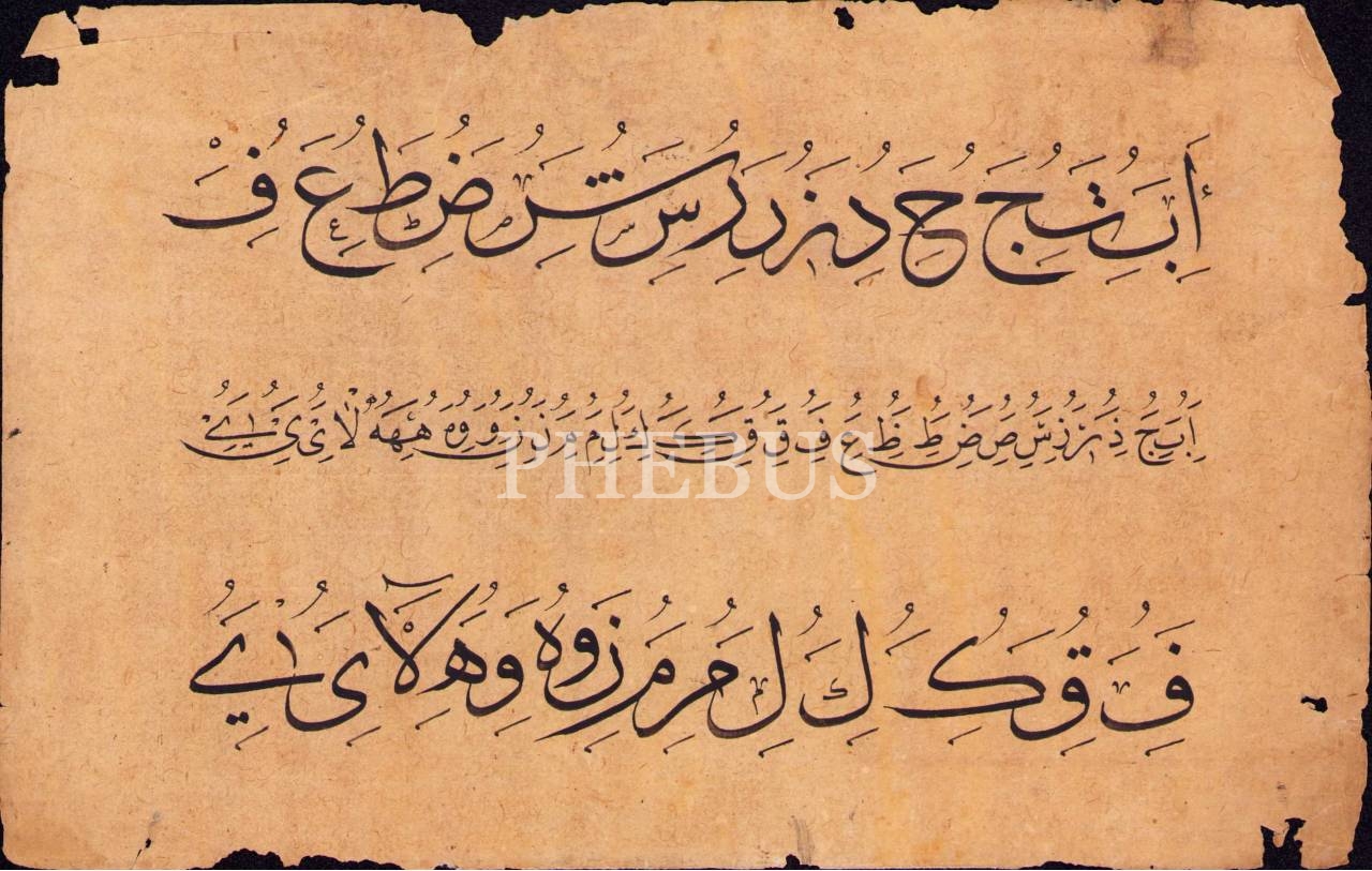Erken Dönem Hoca İşi Sülüs Nesih Hurufat Meşki, iki parça, 22x14 cm