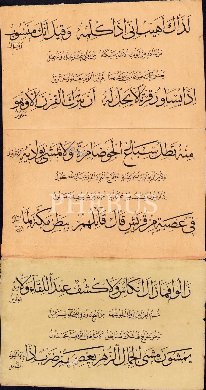 Hoca İşi Sülüs Nesih Meşk, birleşik halde üç parça, her biri 21x14 cm