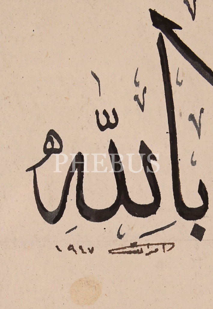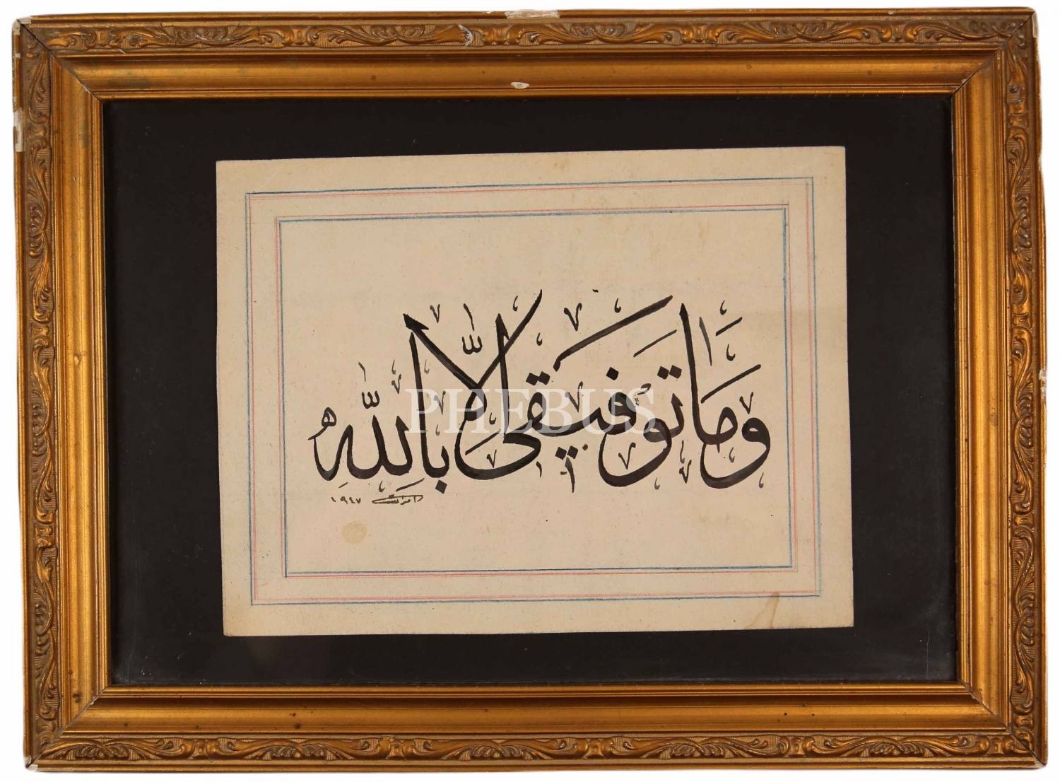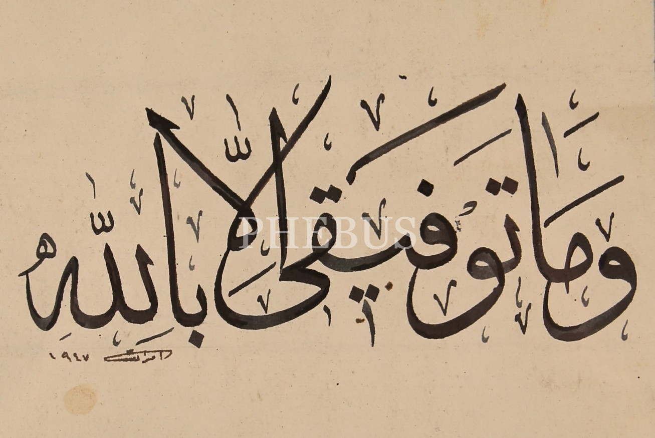 Sülüs Yazı, "Ve mâ tevfik illâ billah", Medresetü'l Hattatin'in Son Talebelerinden Emrullah Demirkaya, 1947 tarihli, çerçeveli, 17x13 cm