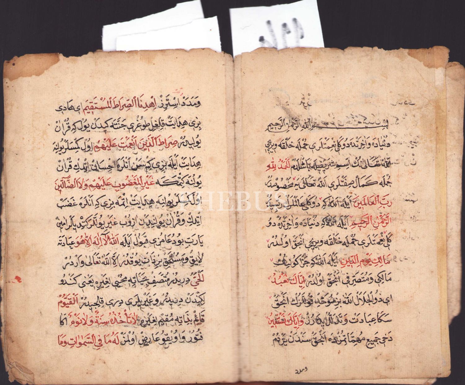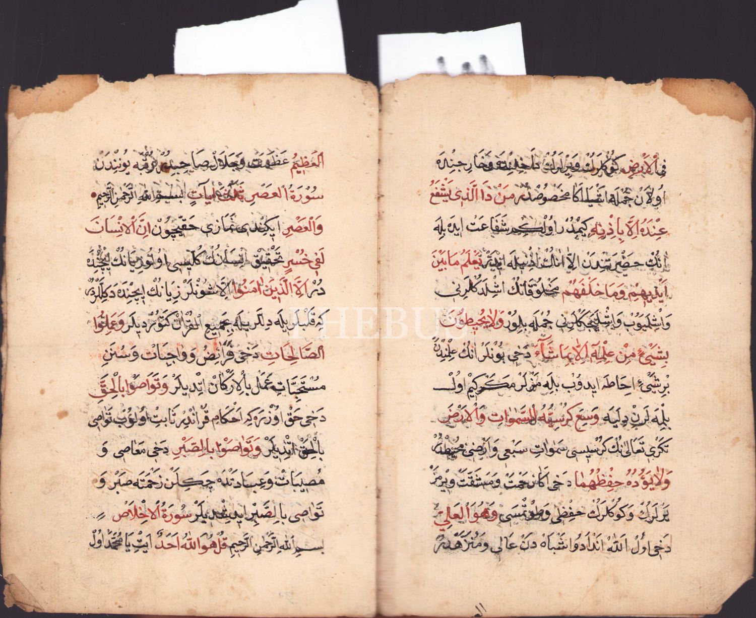 El Yazması Türkçe Tefsir, 5 varak, hatip ebru cildinde, 11x17 cm