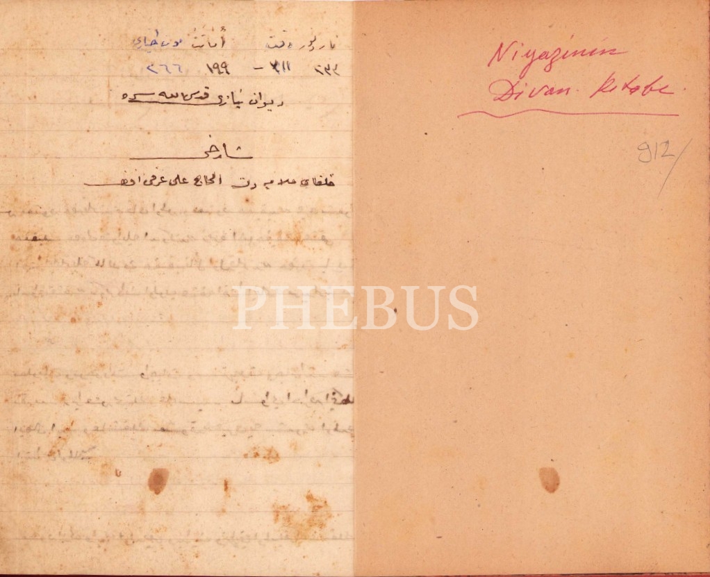 Osmanlıca El Yazması Defter, Niyazi-i Mısri Divanı Şerhi ve İbn Arabi'nin Bazı Eserlerinin Şerhine Dair, Şarihi Hulefa-yı Melamiyeden El-Hac Ali Örfi Efendi, 406 sayfa, 15x20 cm