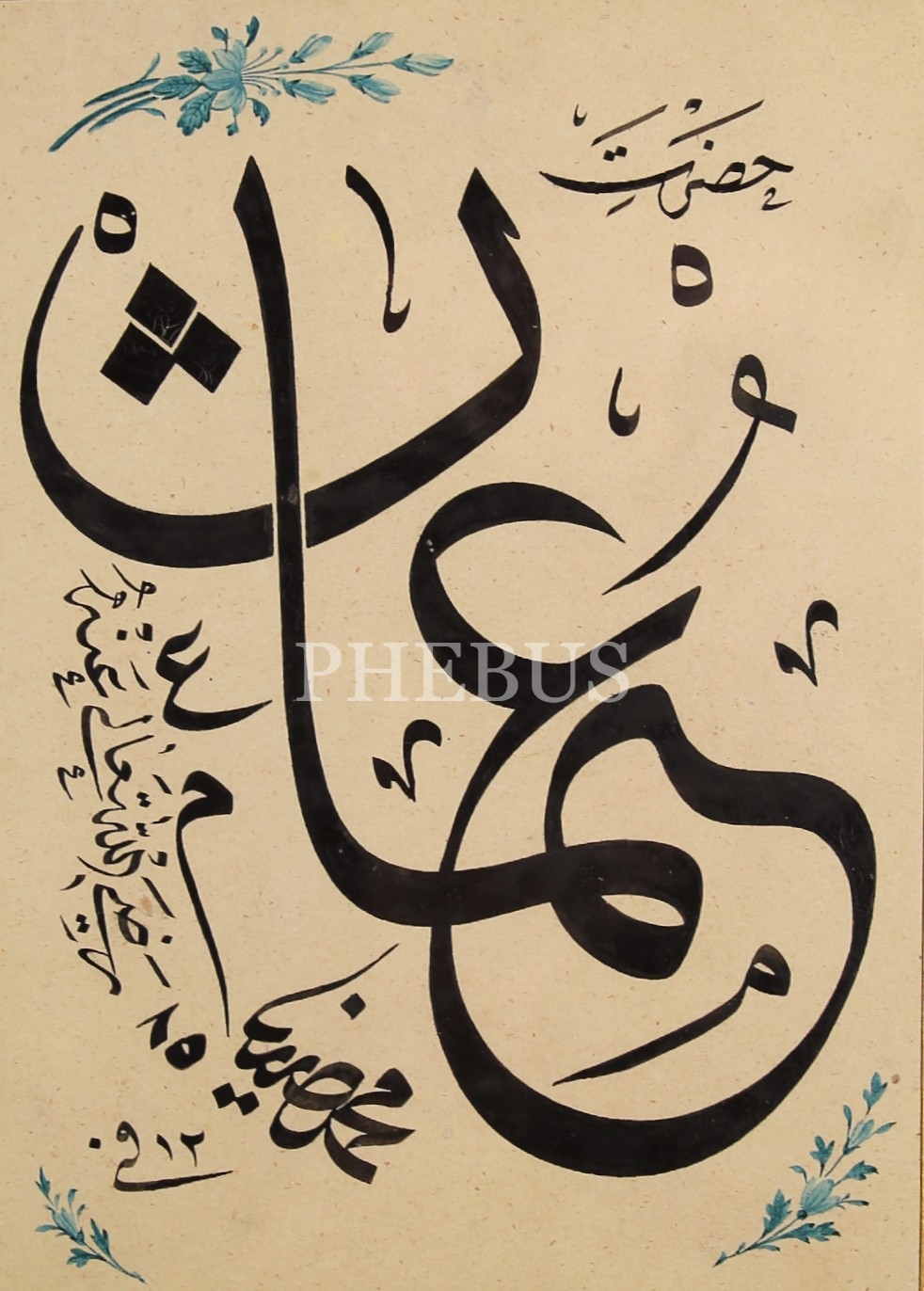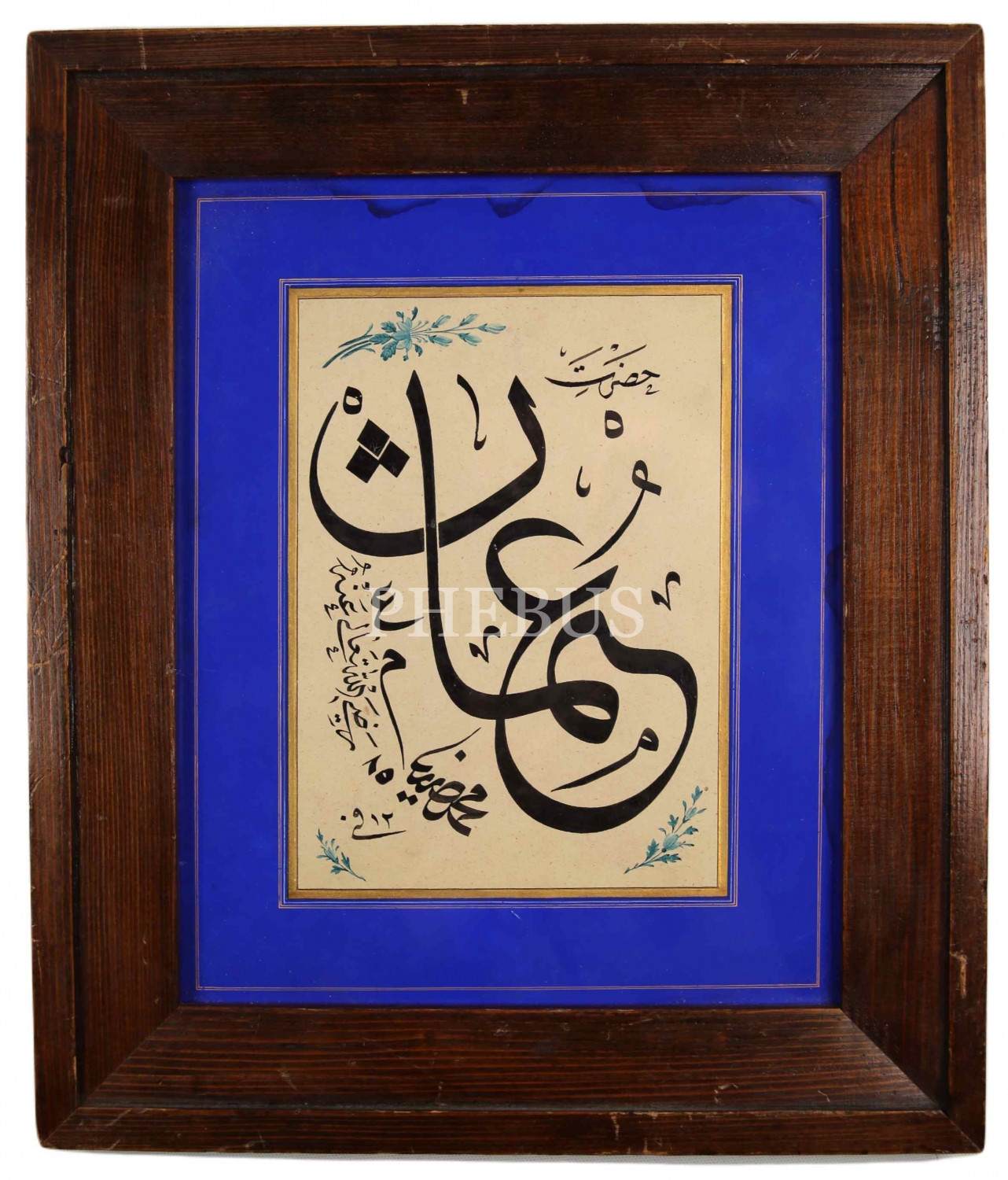 Celi Sülüs Yazı, "Hazret-i Osman", Mehmed Sabri ketebeli, 1285 tarihli, çerçeveli, 13x20 cm