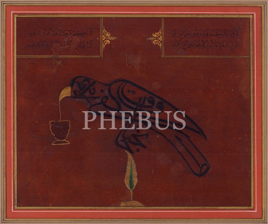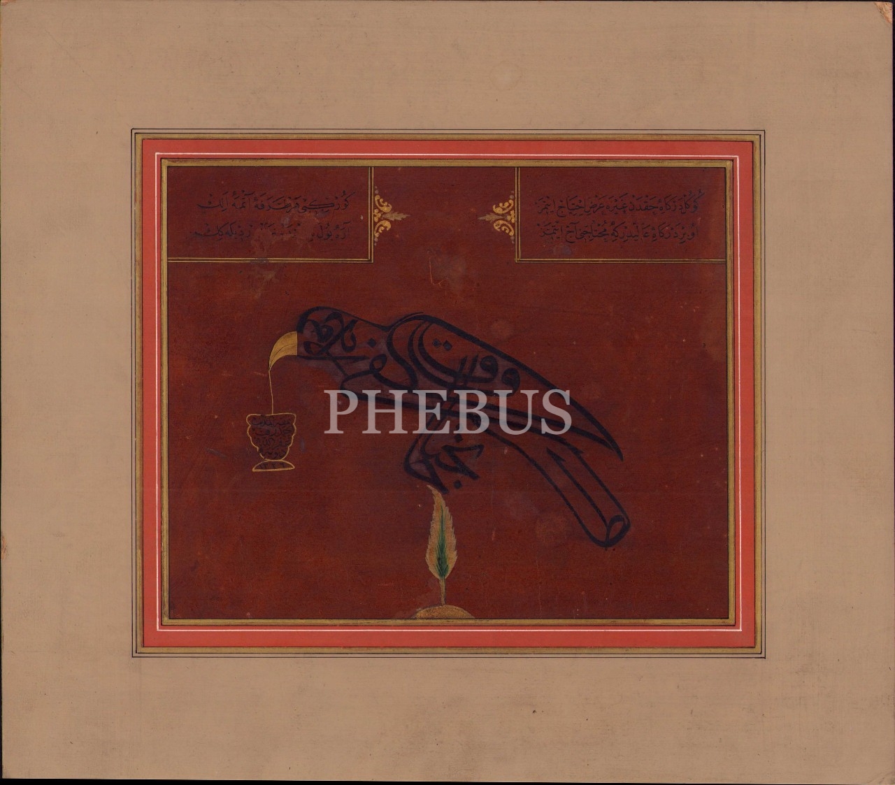 Hattat Ahmed Refet Efendi'nin Kuş Formunda Sülüs İstifi, 1326 tarihli, çerçeveli, 21x17 cm