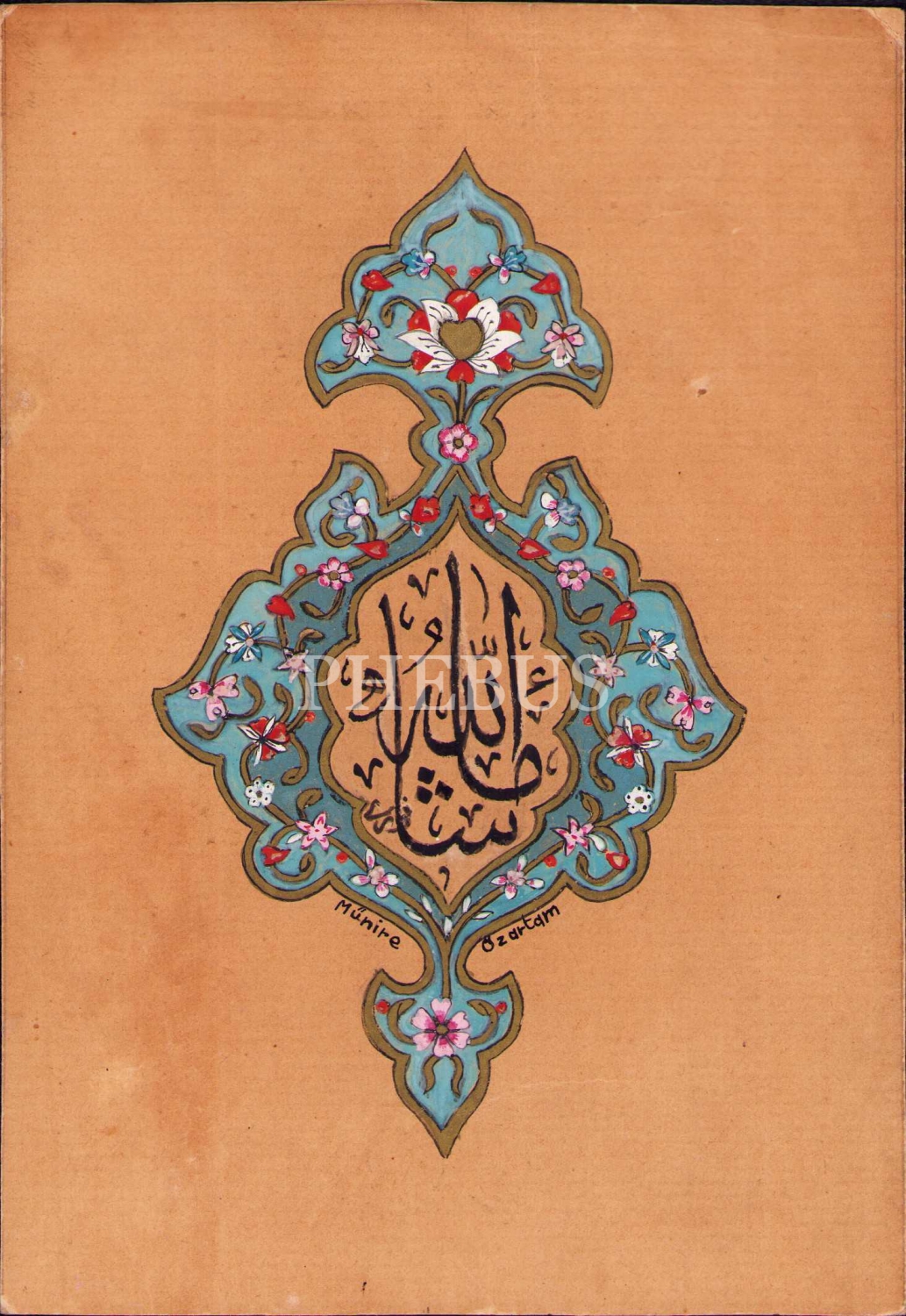 Sülüs Yazı, Maşallah, Nuri ketebeli, Tezhip: Münire Özartam, 12x18 cm