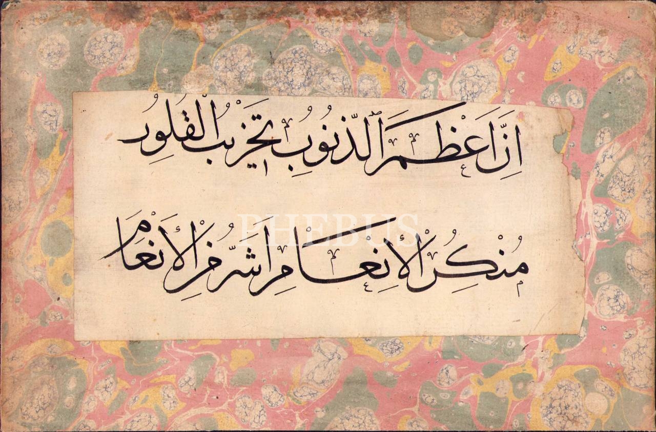 Erken Dönem Sülüs Yazı, ebrulu, 21x10 cm