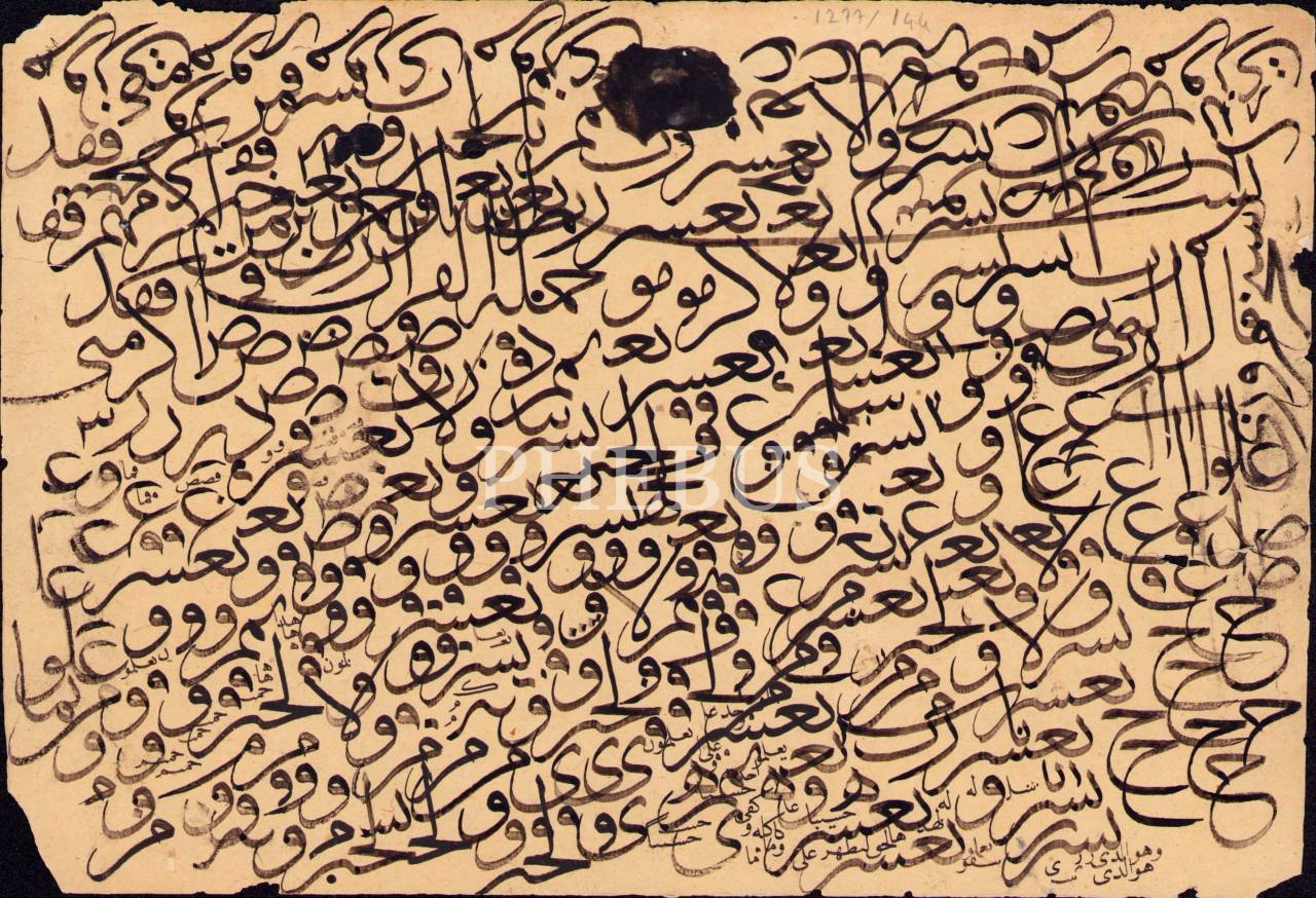 Hoca İşi Sülüs Karalama, "Şeyh Hamdullah" ismi karalanmış, 23x15 cm