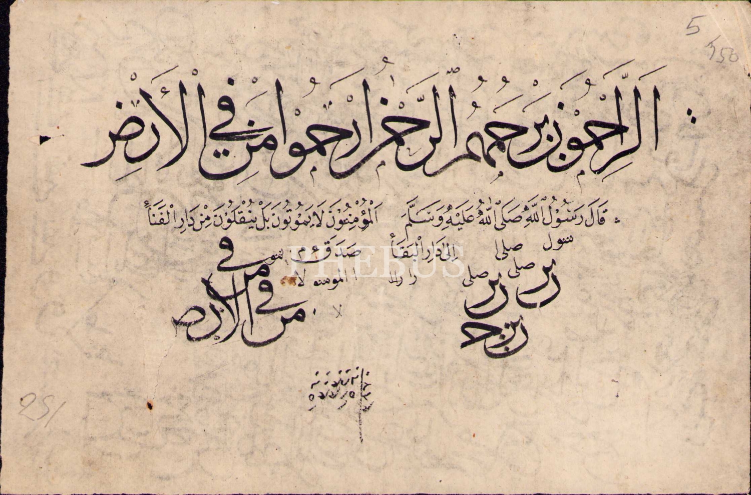 Erken Dönem Hoca İşi Karalama, "Merhametilere Allah da Merhamet Eder", arkalı önlü, 18x13 cm