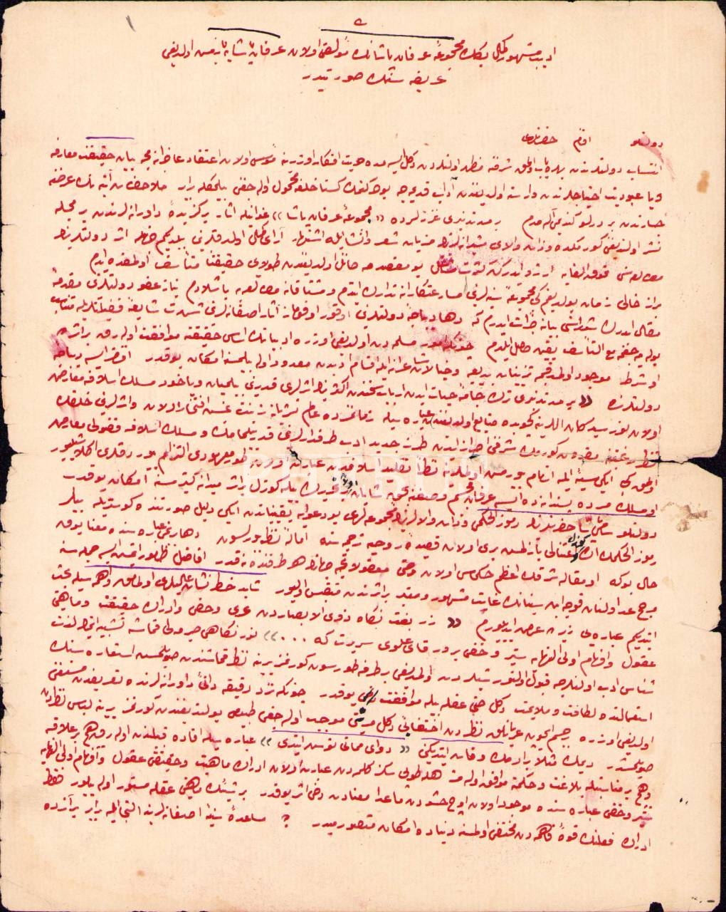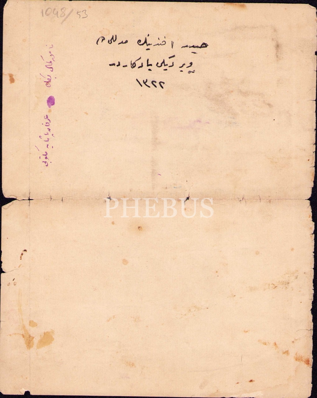 Namık Kemal'in Mecmûa-i İrfan Paşa'nın yazarı İrfan Paşa'ya yazmış olduğu mektubun Osmanlıca kopyası. 18x23 cm, haliyle