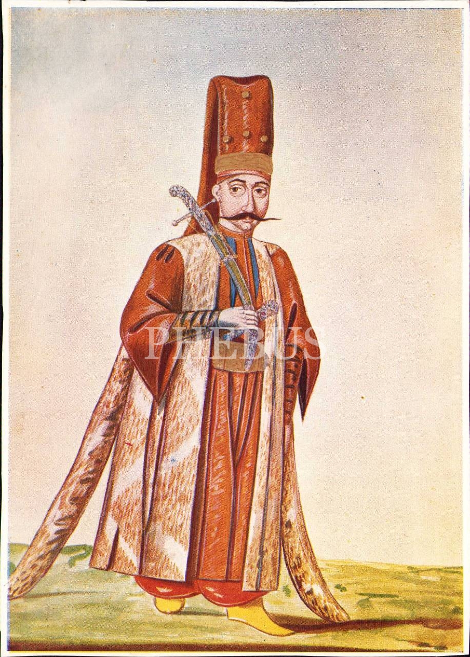 Osmanlı dönemi kıyafetlerine dair baskı görsel lotu, yaklaşık 15x21 cm boyutlarında