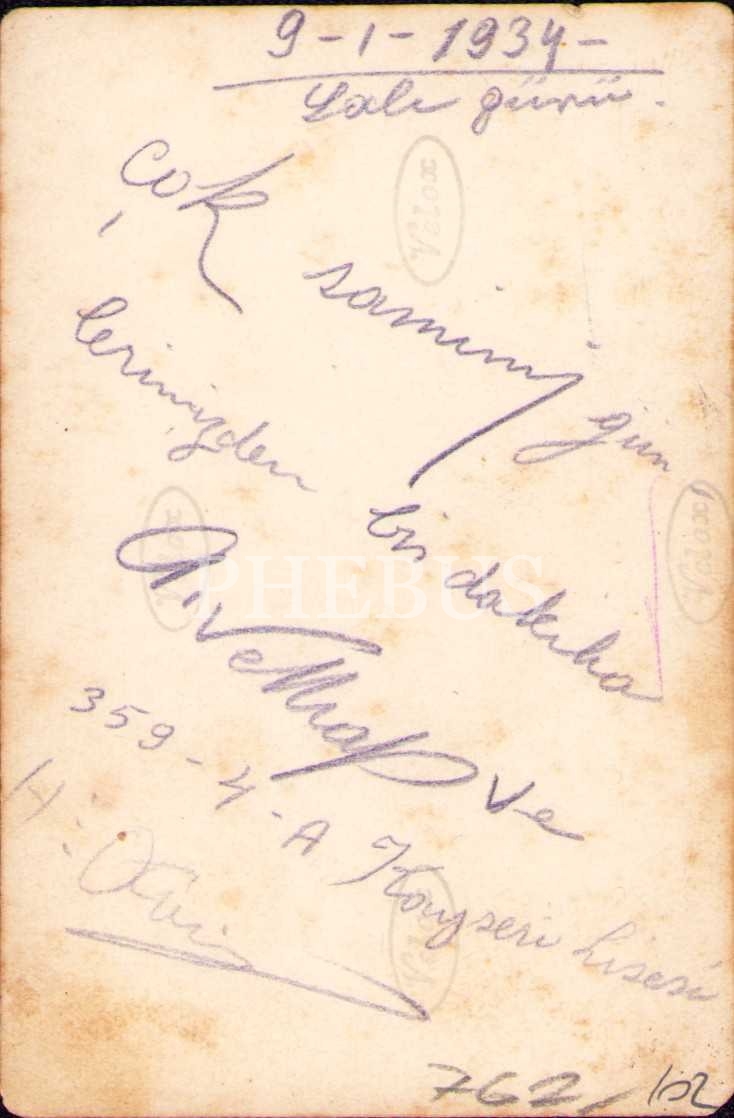 Arkası yazılı hatıra fotoğrafı, Kayseri Lisesi, 1934, 6x9 cm