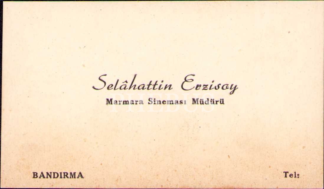 Marmara Sineması Müdürü kartviziti, Bandırma/Balıkesir, 5x9 cm