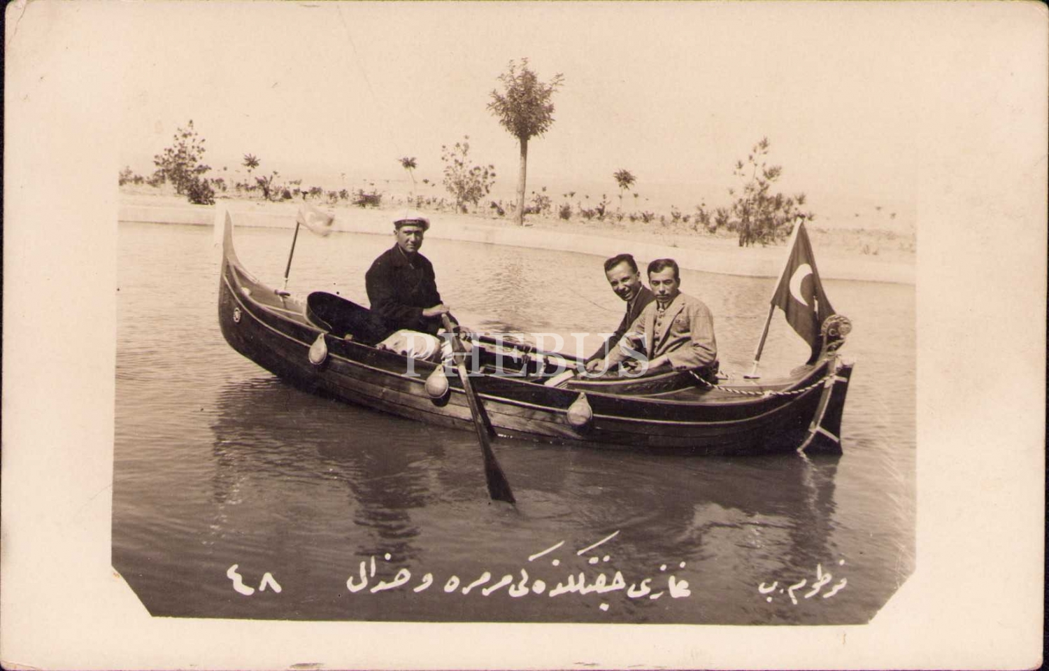 Osmanlıca Gazi Çiftliği'ndeki Marmara ve Sandal yazılı hatıra fotoğrafı, Foto M. B.