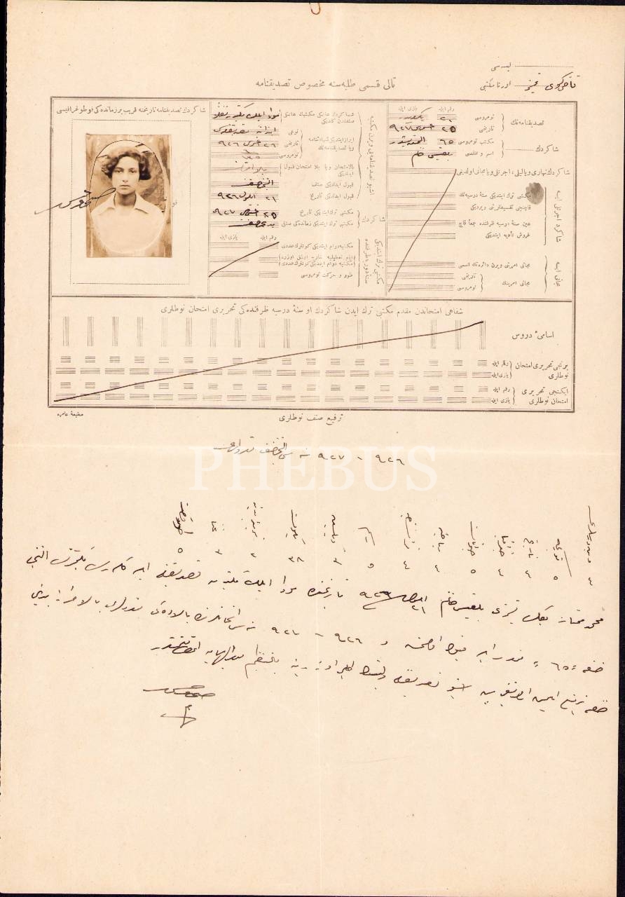 Osmanlıca fotoğraflı tasdikname, Kadıköy Kız Ortaokulu, 1927, 28x40 cm