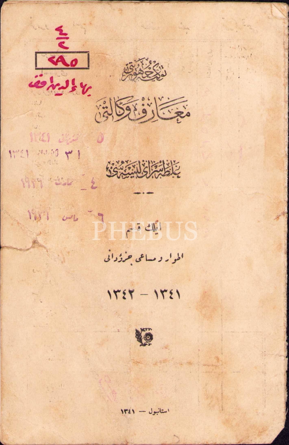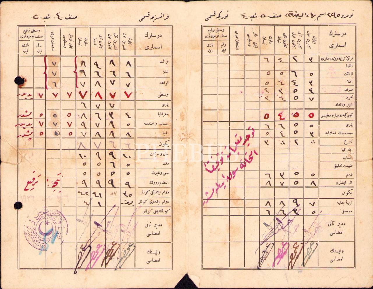 Osmanlıca Galatasaray Lisesi etvâr ve mesâî cüzdanı [öğrenci karnesi], 1341-42 eğitim yılı,12x18 cm, kenarları haliyle