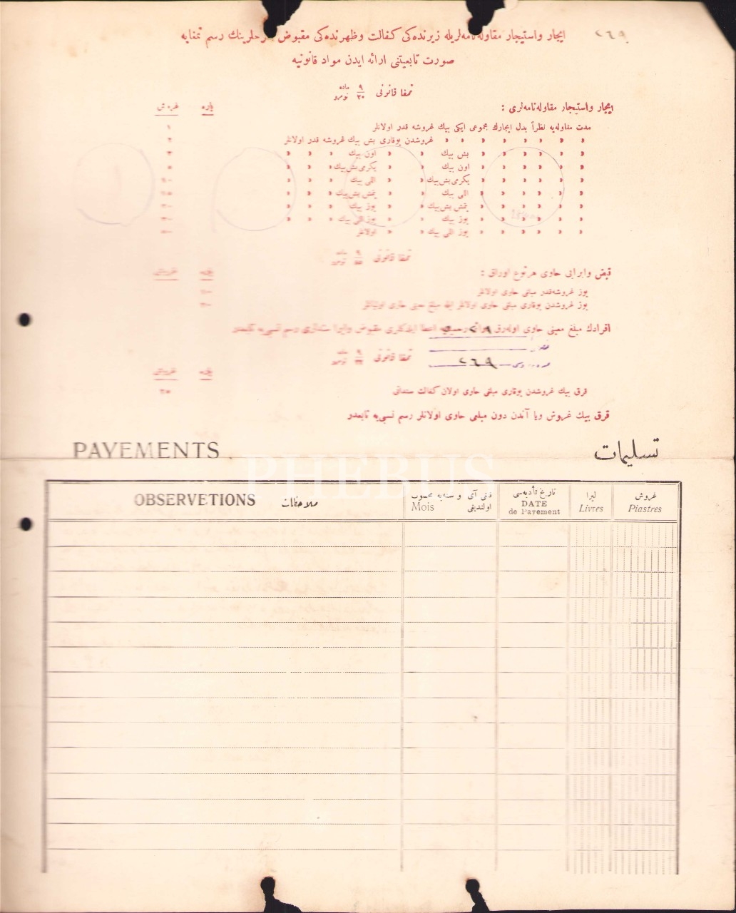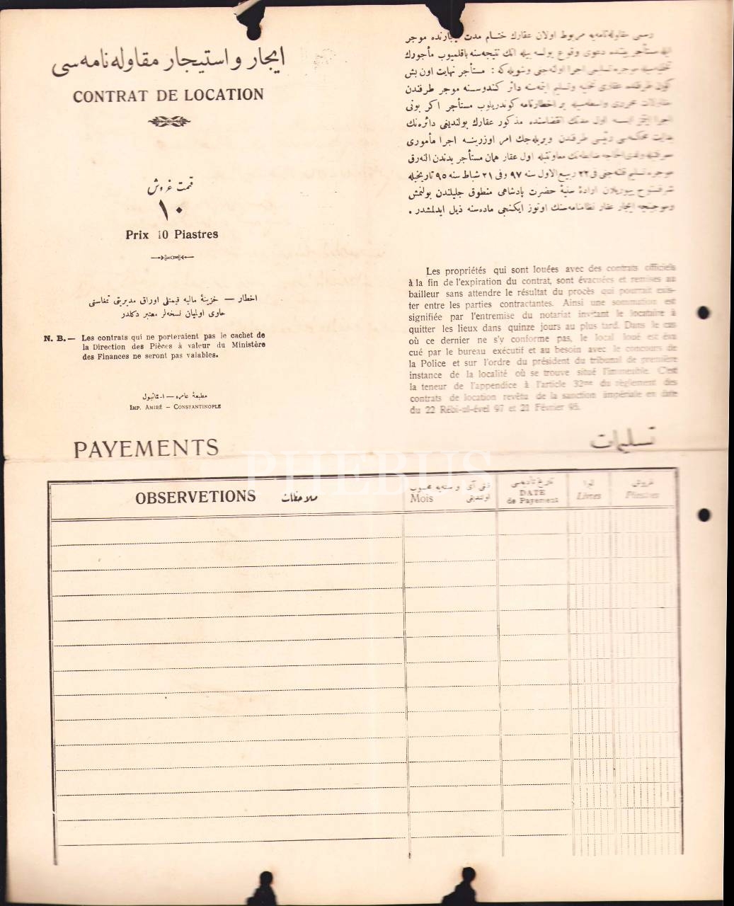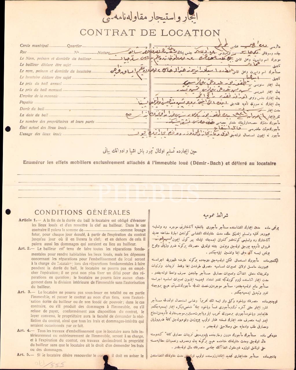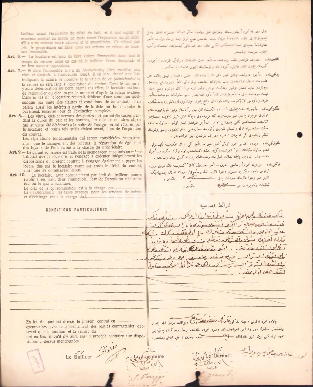 İtalyan bir kiracı ile yapılan Osmanlıca-Fransızca kira sözleşmesi, Beyoğlu/İstanbul 1921, 35x56 cm, kenarları haliyle