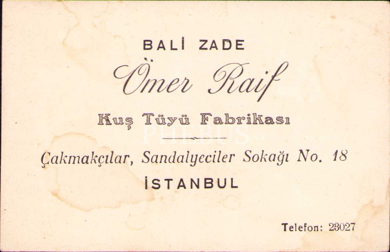 Bali Zade Ömer Raif kartviziti, İstanbul, 7x11 cm