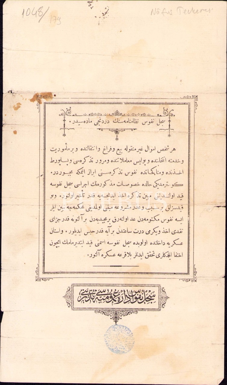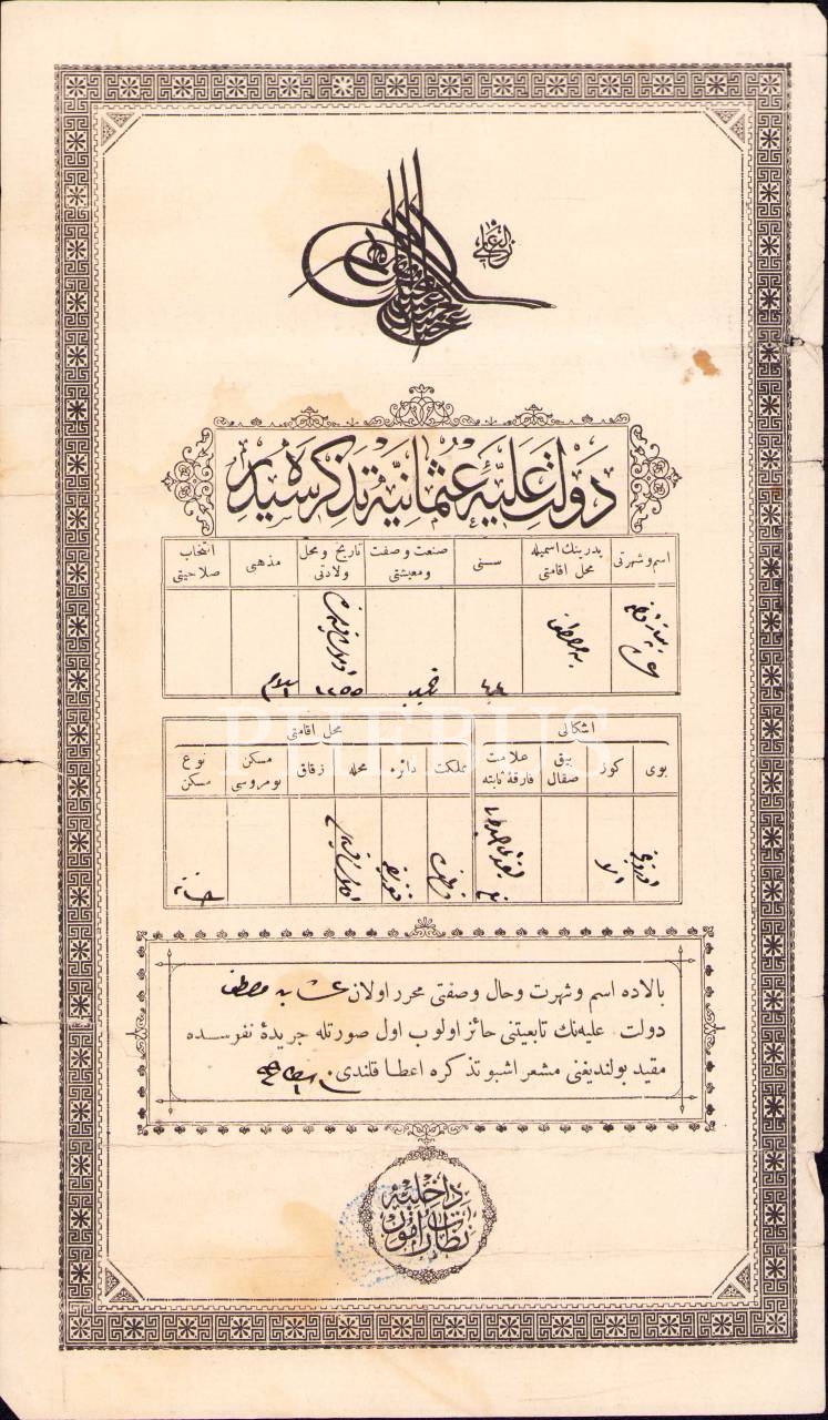 Osmanlıca nüfus tezkiresi, 1299, 17x29 cm, kenarları haliyle