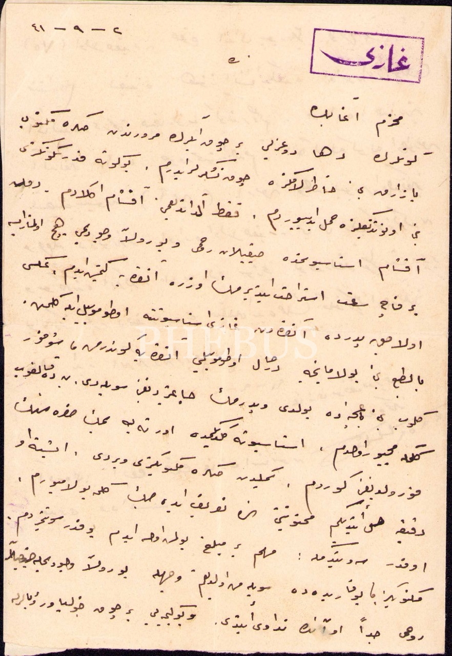 Gazi Tren İstasyonu müdürüne ait Osmanlıca şahsi mektup, Ankara 1941, 21x29 cm