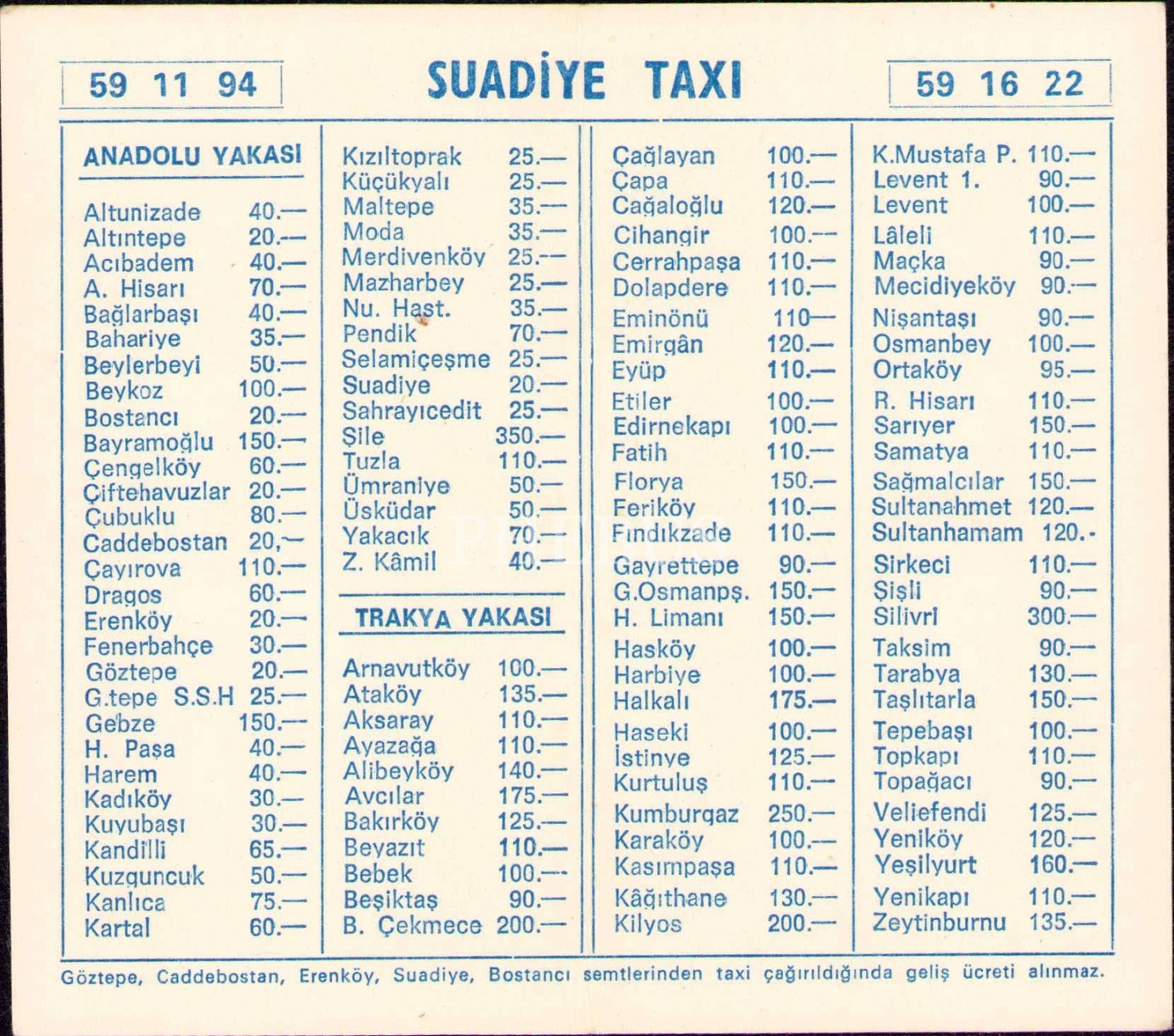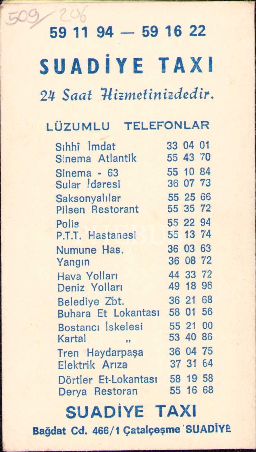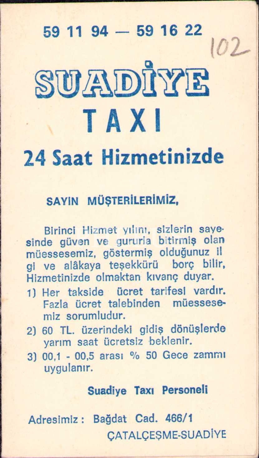Suadiye Taxi tanıtım ve tarife kartı, 12x14 cm