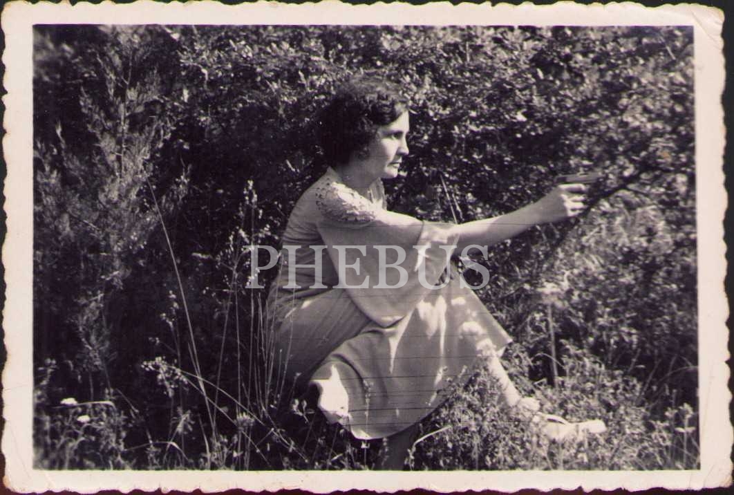 Elinde tabanca ile poz vermiş kadın, 6x9 cm