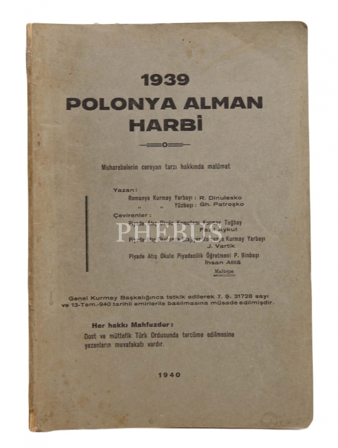 1939 Polonya Alman Harbi - Muharebelerin cereyan tarzı hakkında malumat, Genelkurmay Başkanlığı, 1940, 87 sayfa + ekler, 16x24 cm
