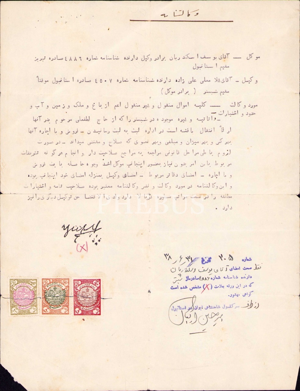 İstanbul İran Başkonsolosluğu soğuk damgalı Farsça vekaletname, 23x30 cm, kenarları haliyle