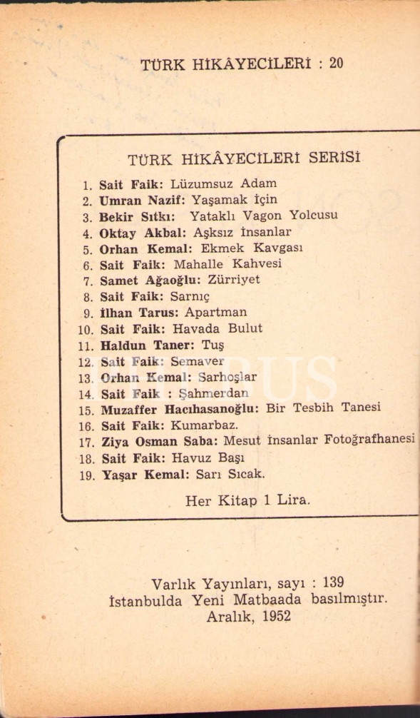 Son Kuşlar, Sait Faik, Varlık Yayınları, Aralık 1952