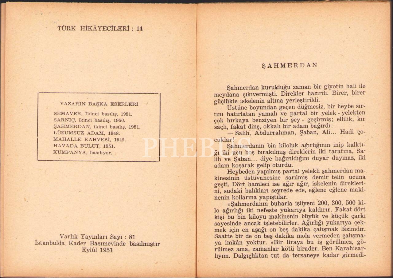 Şahmerdan, Sait Faik, Varlık Yayınları, Eylül 1951