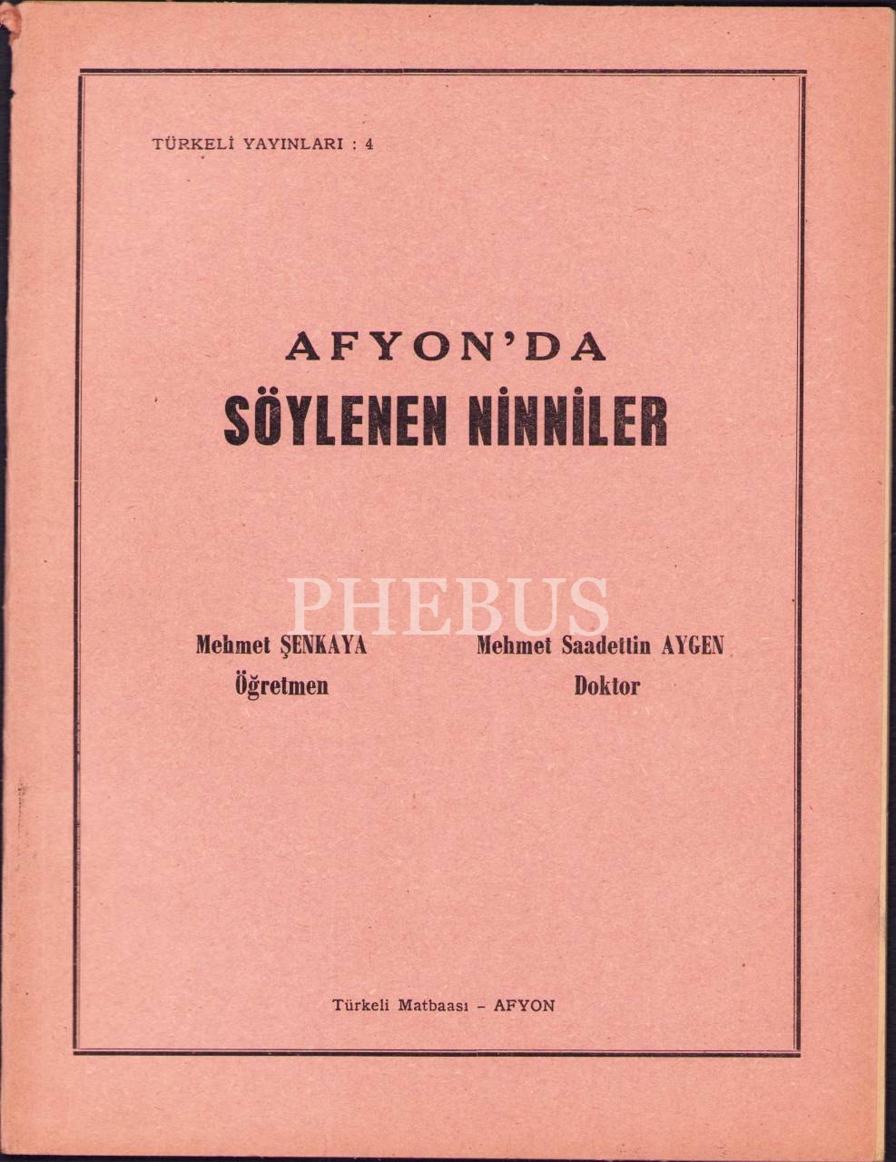 Afyon'da Söylenen Ninniler, Mehmet Şenkaya - Mehmet Saadettin Aygen, Türkeli Yayınları: 4, Afyon 1980, 48 sayfa, 20x26 cm