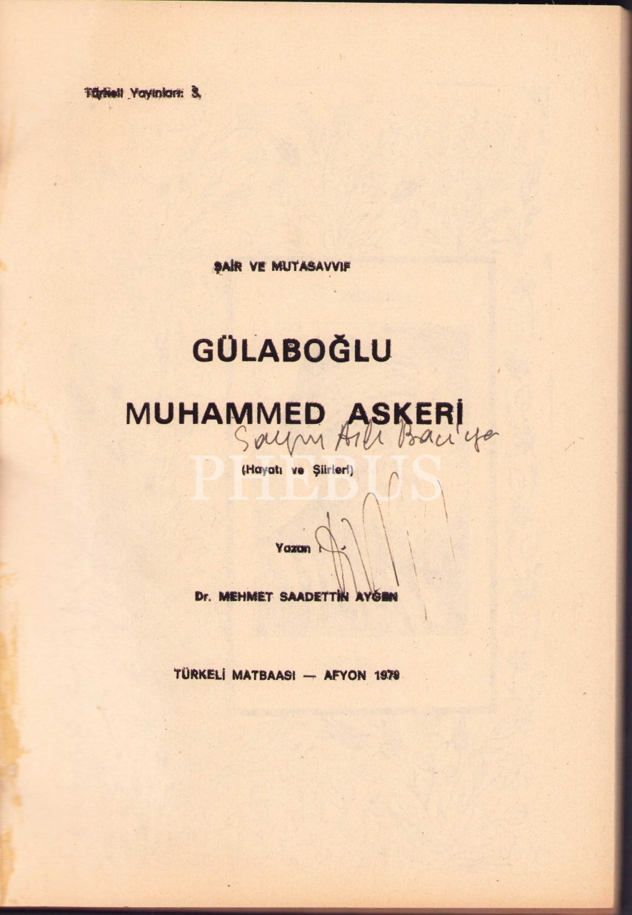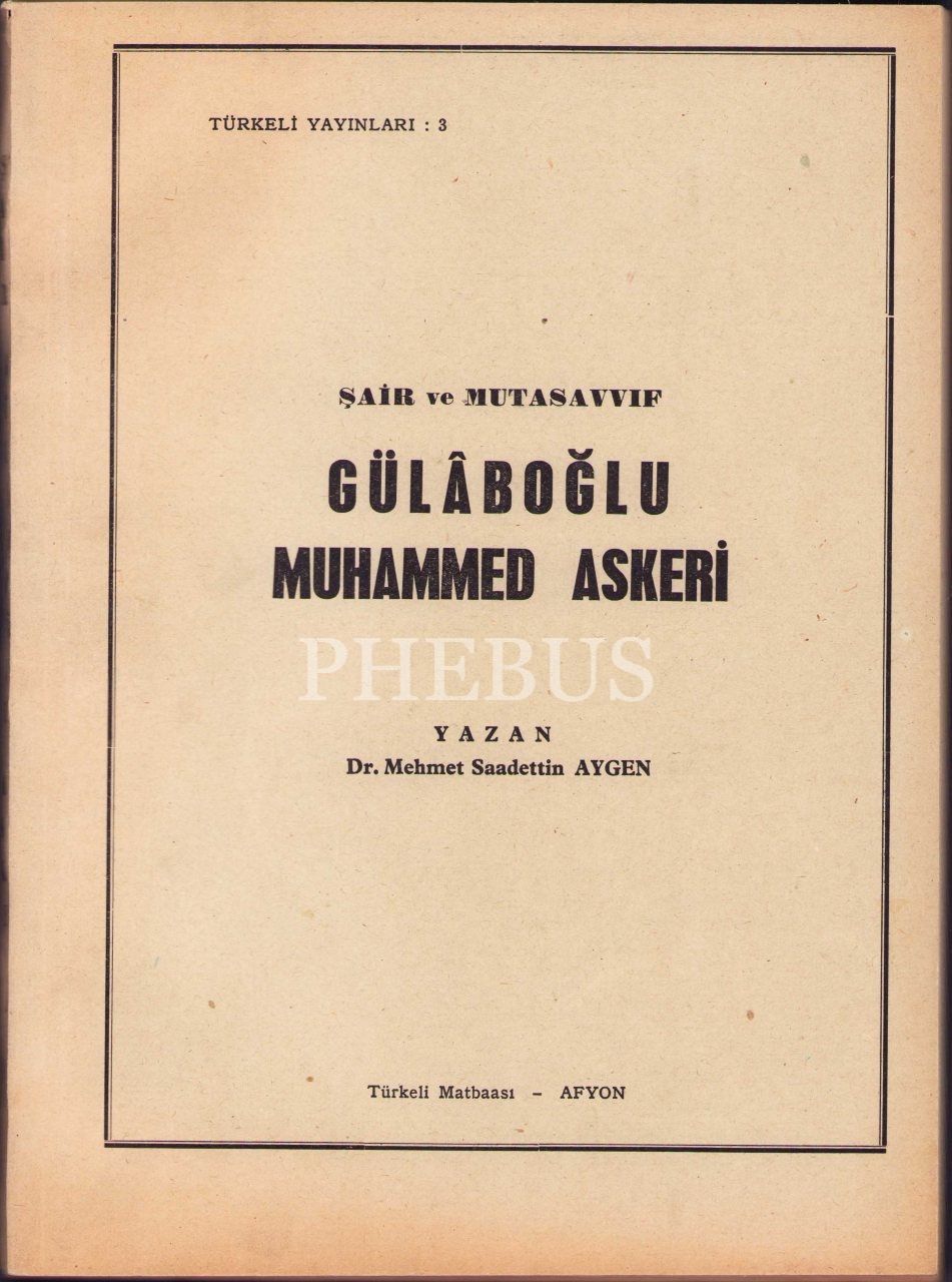 Şair ve Mutasavvıf Gülaboğlu Muhammed Askeri, Dr. Mehmet Saadettin Aygen, Türkeli Yayınları: 3, Afyon 1979, 192 sayfa, 20x26 cm