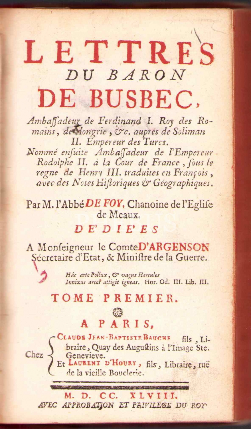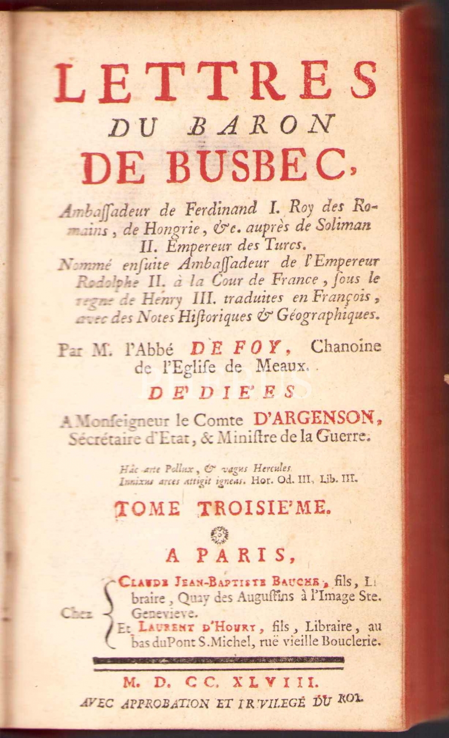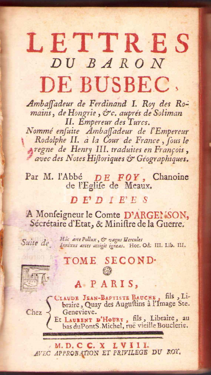 Fransızca üç adet Lettres Du Baron De Busbec cildi, Paris baskı, 10x17 cm, bazı sayfalar haliyle