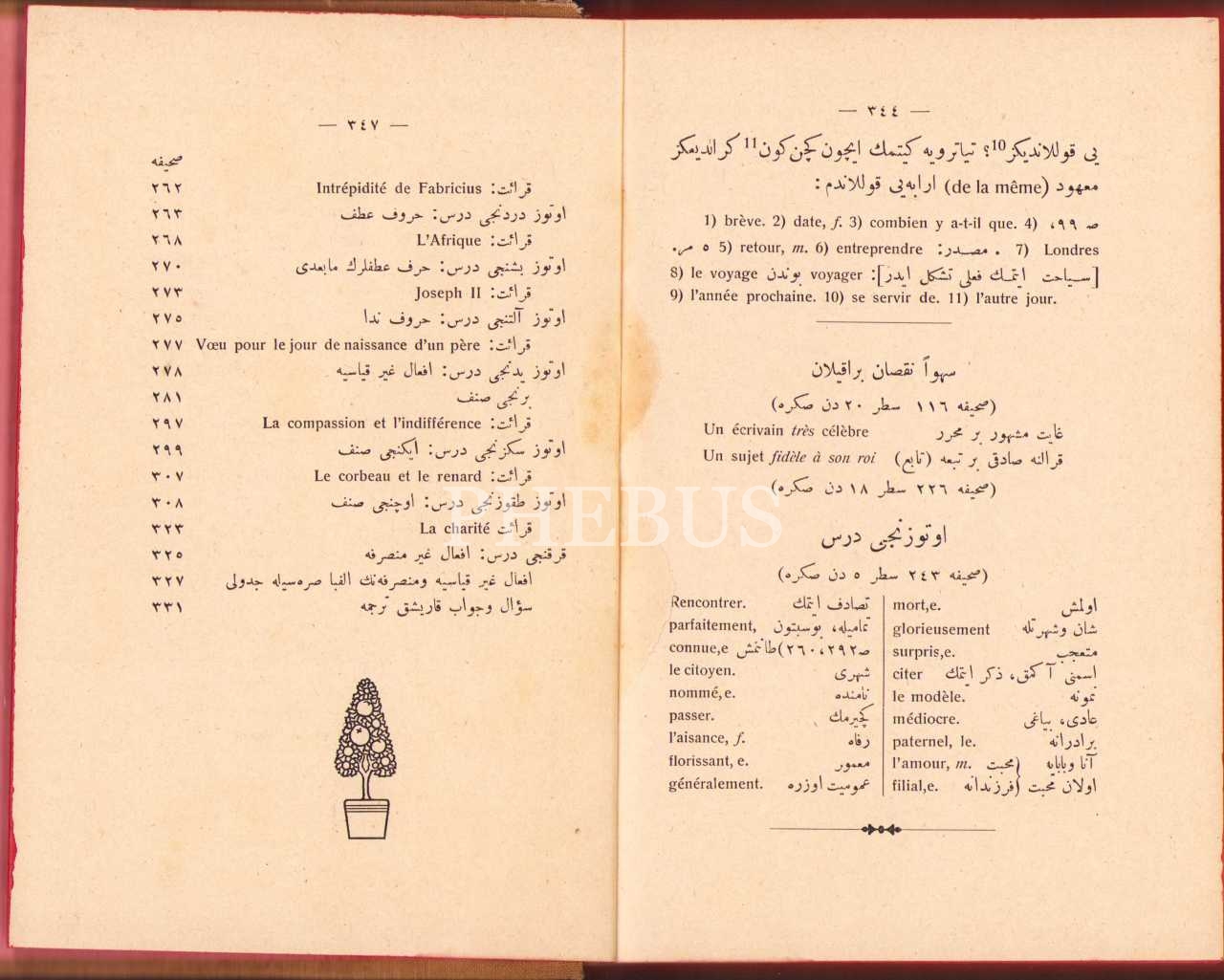Osmanlıca Bedraka-i Lisân-ı Fransevî - Kavâid-i Sarfiyye, Emil Otto, Çev. Beşir Fuad, Araks Matbaası, İstanbul 1329, 347 s., 14x20 cm, sondan bir sayfası eksik, ÖZEGE; 13334
