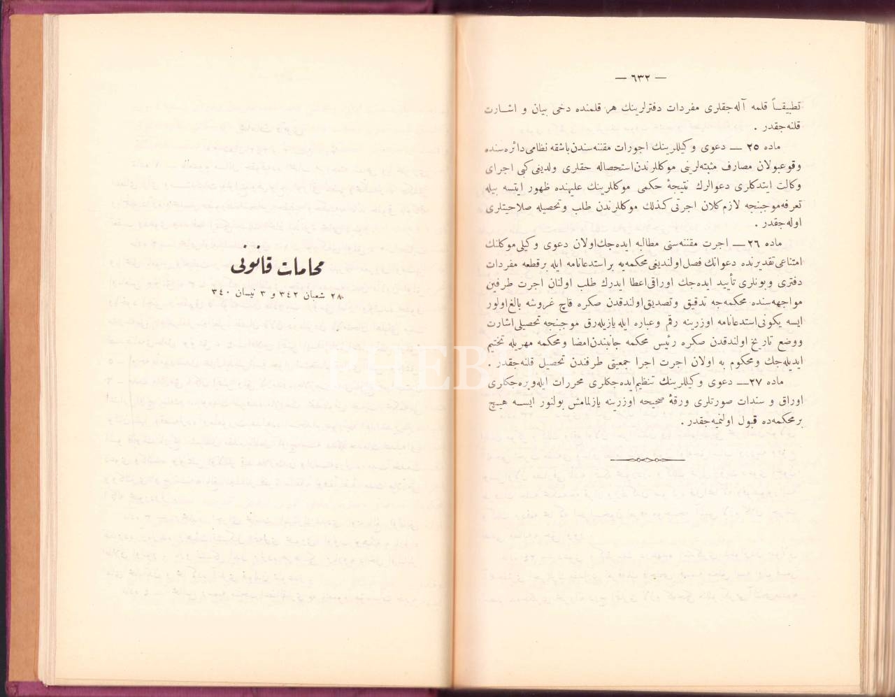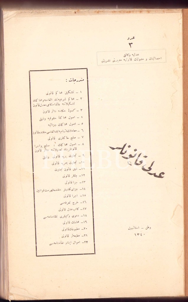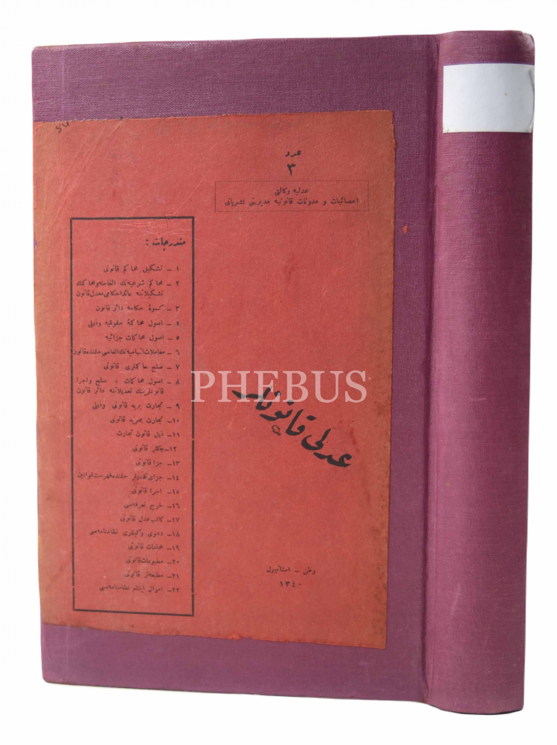 Osmanlıca Adlî Kânunlar, Adliyye Vekâleti İhsâiyyât ve Müdevvenât-ı Kânûniyye Müdiriyyeti Neşriyyâtı, İstanbul 1340, 705 s., 16x24 cm
