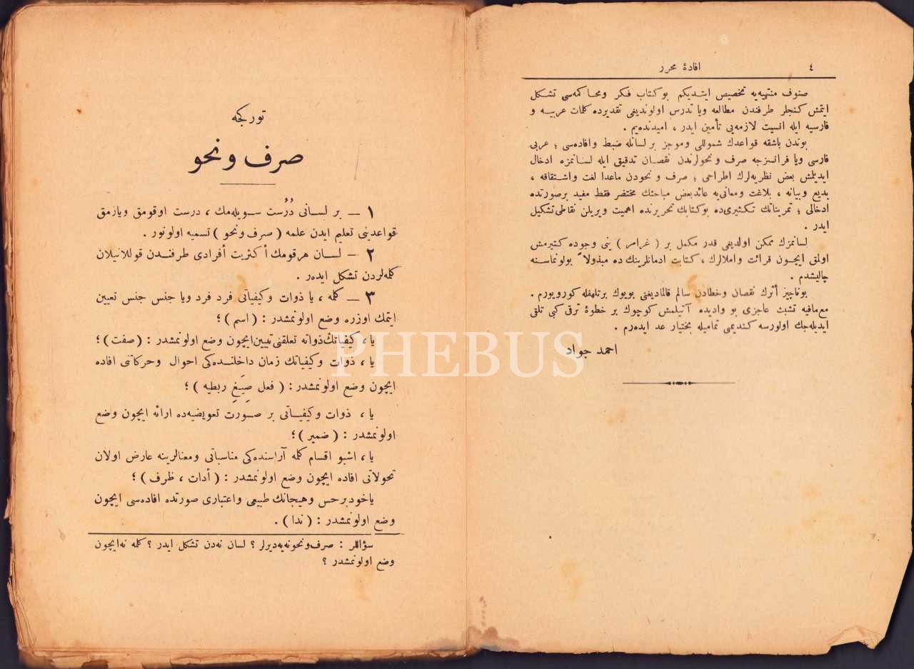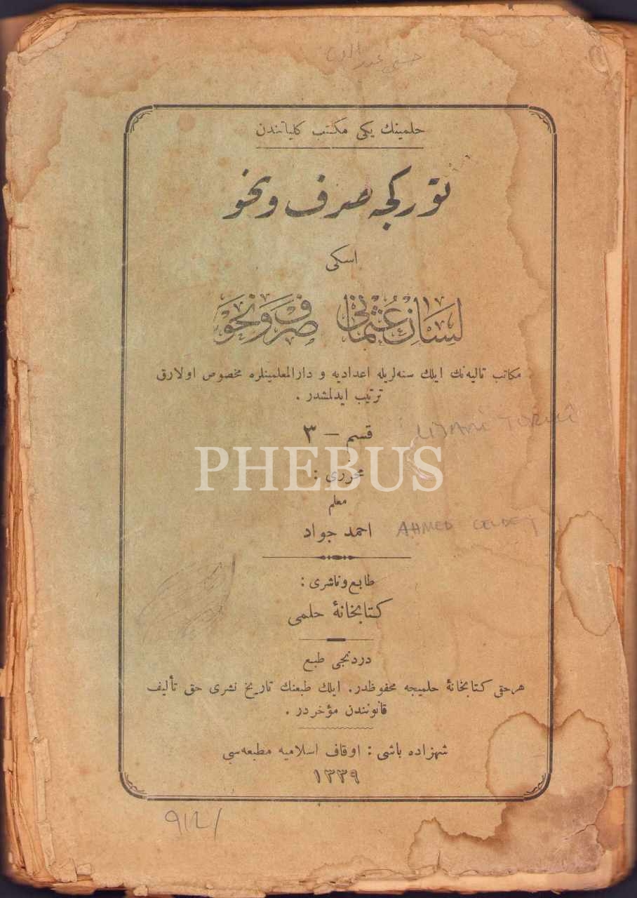 Osmanlıca Türkçe Sarf ve Nahiv, Muallim Ahmed Cevad, Evkâf-ı İslâmiyye Matbaası, İstanbul 1339, 272 s., 15x21 cm, haliyle