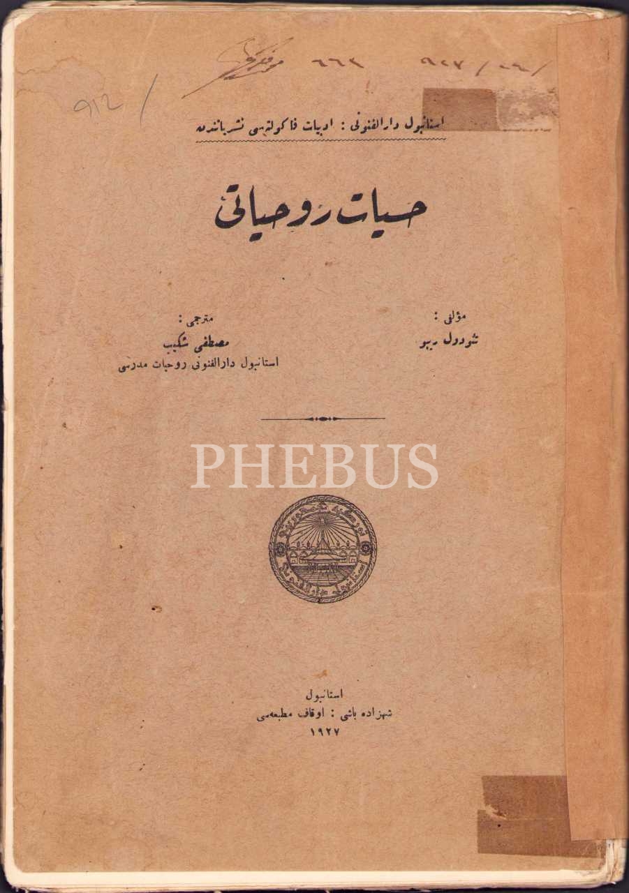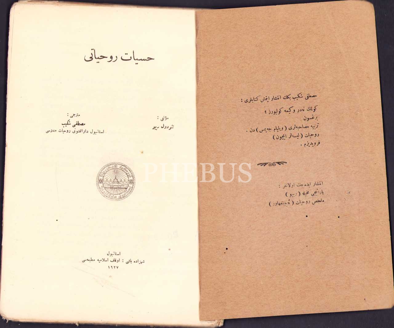 Osmanlıca Hissiyyât Rûhiyyâtı, Theodule Ribot, Çev. Mustafa Şekib, Evkâf Matbaası, İstanbul 1927, 166 s., 18x25 cm