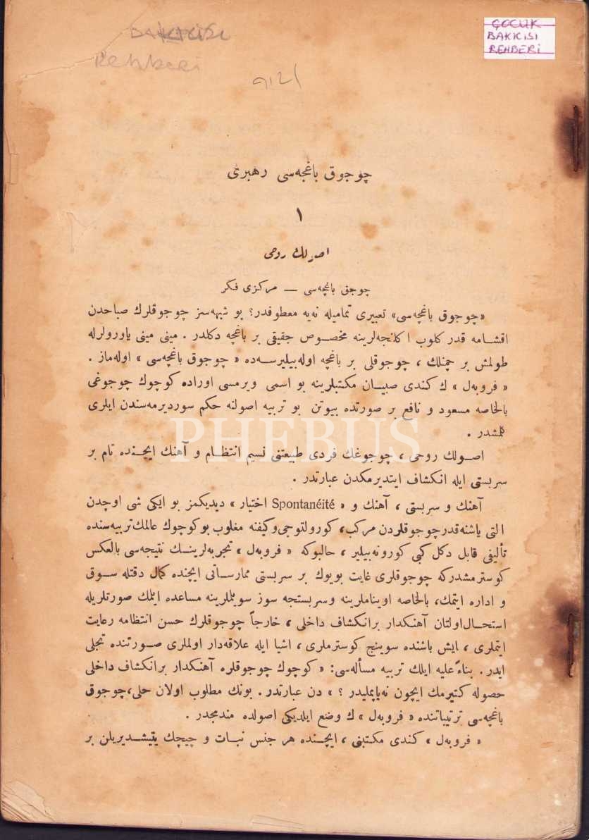Osmanlıca Çocuk Bağçesi Rehberi, 124 s., 17x24 cm, ciltsiz, künyesi eksik