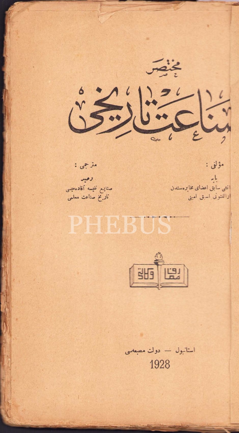 Osmanlıca Muhtasar Sanâat Târîhi [1. cilt], Bayet, Çev. Vahid, Devlet Matbaası, İstanbul 1928, 184 s., 17x25 cm, haliyle, Özegeno: 14269