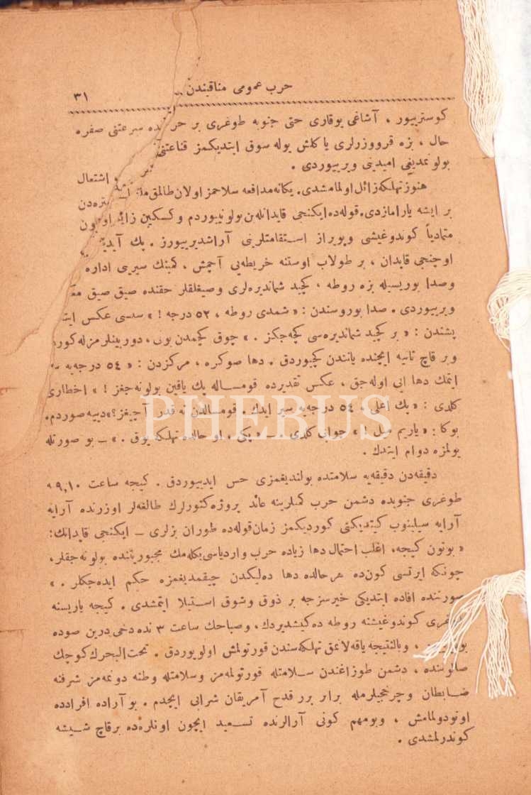 Osmanlıca Mecmûa-i Seneviyye-i Bahriyye, 160 s., 17x24 cm, kapaksız, künyesi ve ilk birkaç sayfası eksik, 31. sayfaya kadar birkaç sayfa haliyle