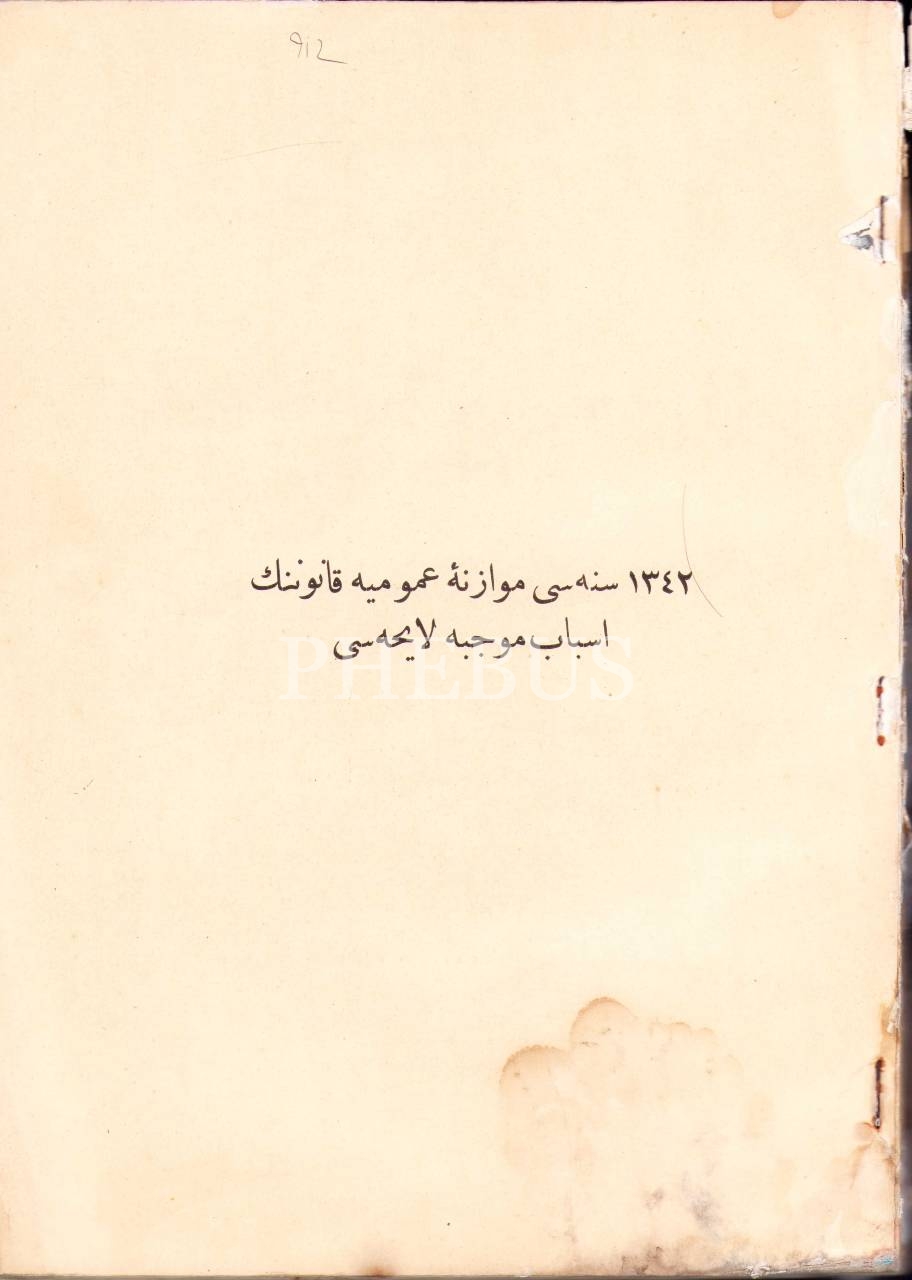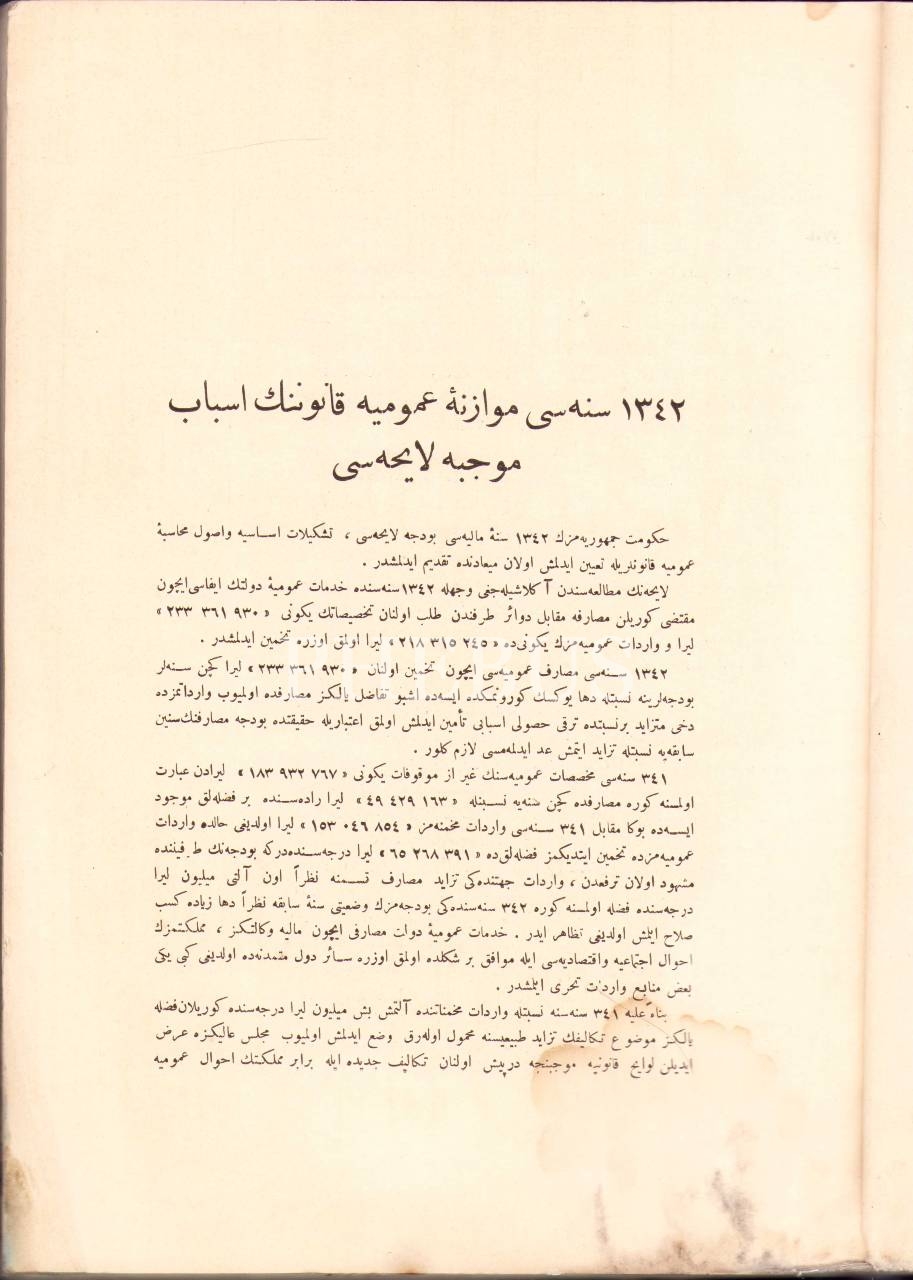 Osmanlıca 1342 Senesi Muvâzene-i Umûmiyye Kânûnunun Esbâb-ı Mûcibe Lâyihası, 368 s., 25x33 cm
