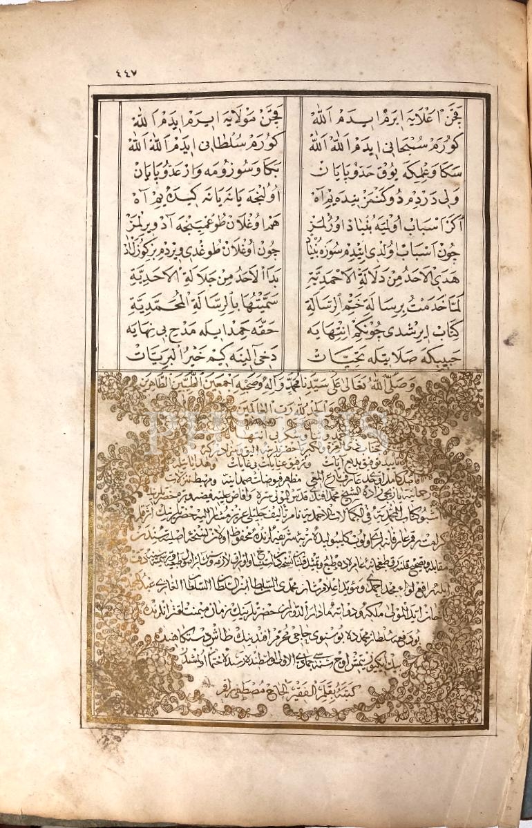 Osmanlıca Kitâbu'l-Muhammediyye fi'l-Kemâlâti'l-Ahmediyye, Yazıcızâde Şeyh Mehmed Efendi, 1273, 447 s., 20x27 cm, cildi yorgun, Özegeno: 10955
