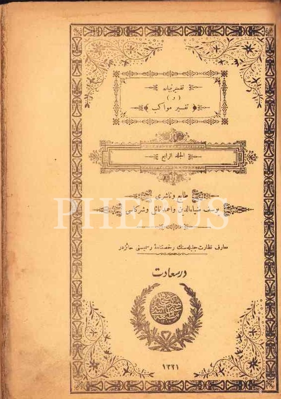 Osmanlıca Tefsîr-i Tibyân ve Tefsîr-i Mevâkib [3 ve 4. cilt], Şirket-i Sahafiyye-i Osmaniyye Matbaası, Dersaadet [İstanbul] 1321-22, 398+342 s., 20x27 cm, 3. cildin künye sayfası eksik, haliyle