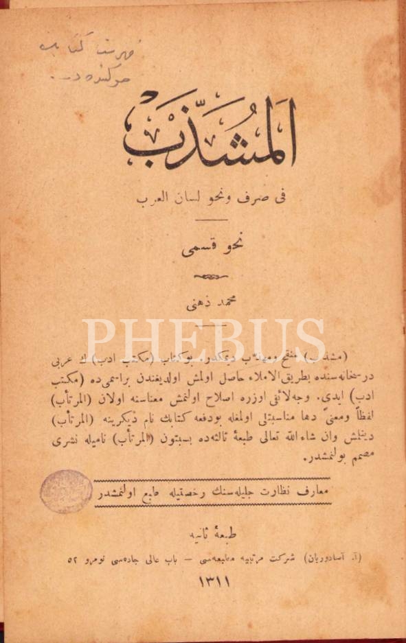 Osmanlıca el-Müşezzeb [2. baskı], Mehmed Zihni, Asaduryan Şirket-i Mürettibiyye Matbaası, 1311, 140 s., 12x18 cm
