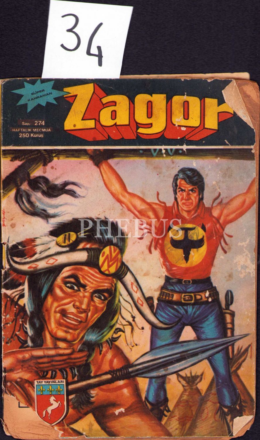 Yalçın imzalı orijinal kapak çizimiyle Zagor, Sayı: 274 - Katil Avı, Tay Yayınları, 50 sayfa, 14x19 cm, haliyle