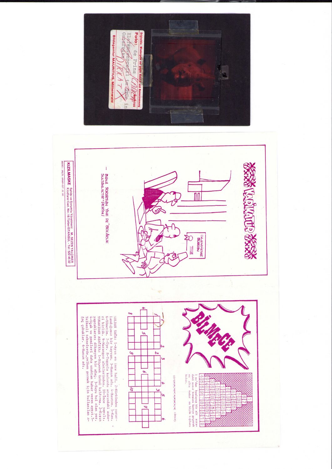 Kızılmaske'nin 4. sayısının arka kapak fotoğrafının negatifi ve özgün asetatları, muhtelif ebatlarda