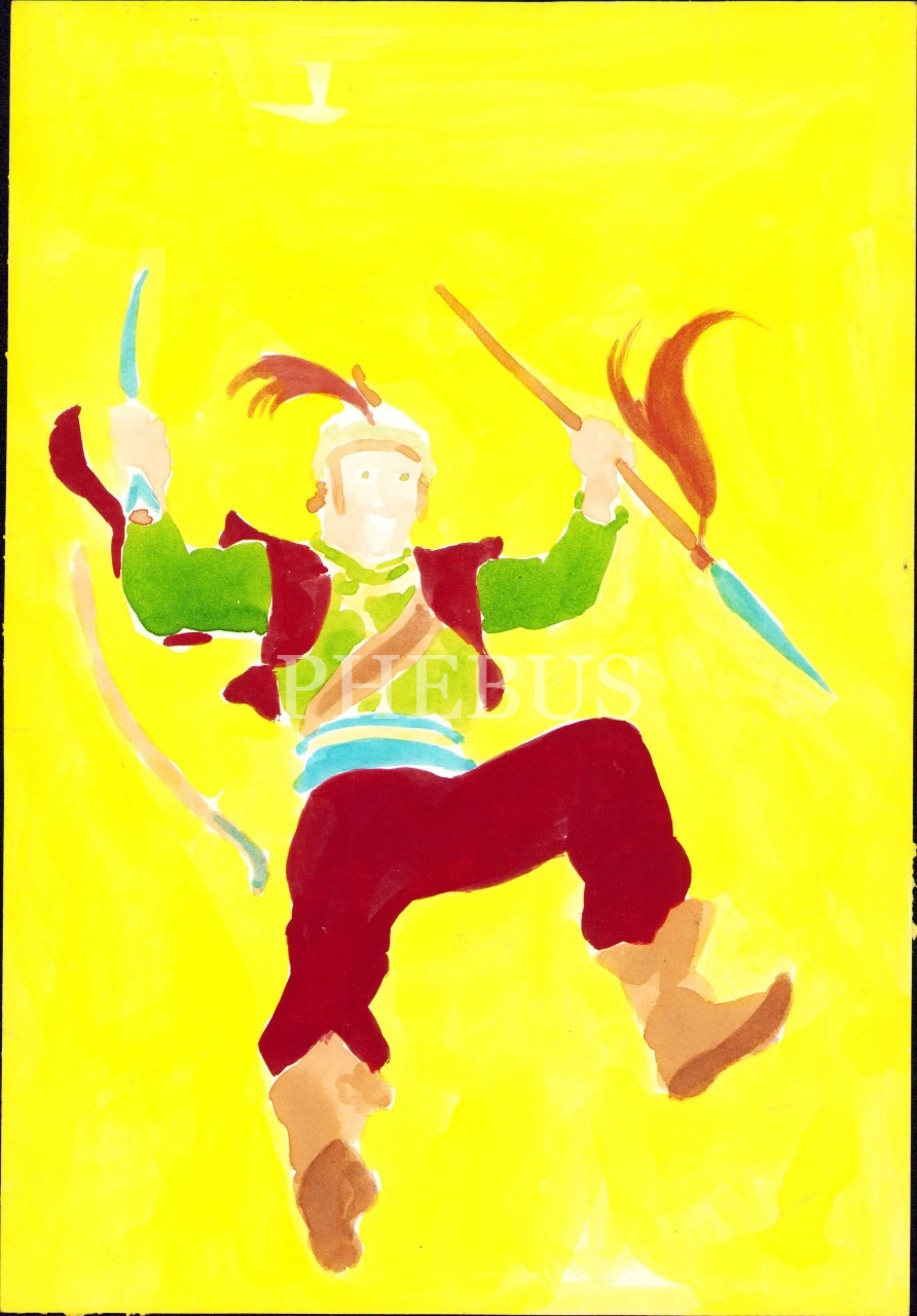 Talat Güreli imzalı Yenilmez Osmanlı Akıncısı Hızır Bey kapak çizimi, çift taraflı, 19x27 cm