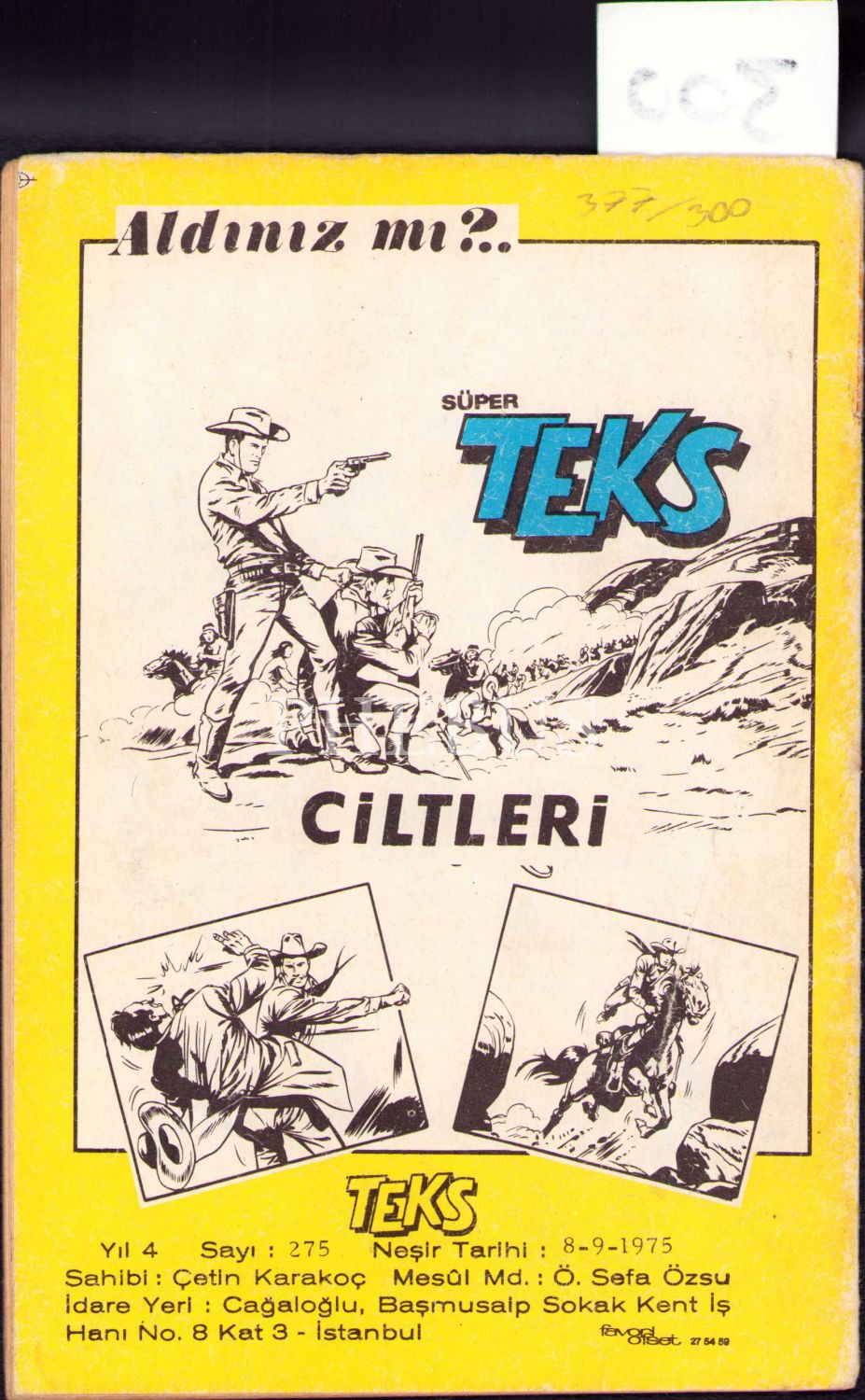 Süper Teks, No: 275, ''Uğursuz Haç'', Sahibi: Çetin Karakoç, 32 sayfa, 14x20 cm